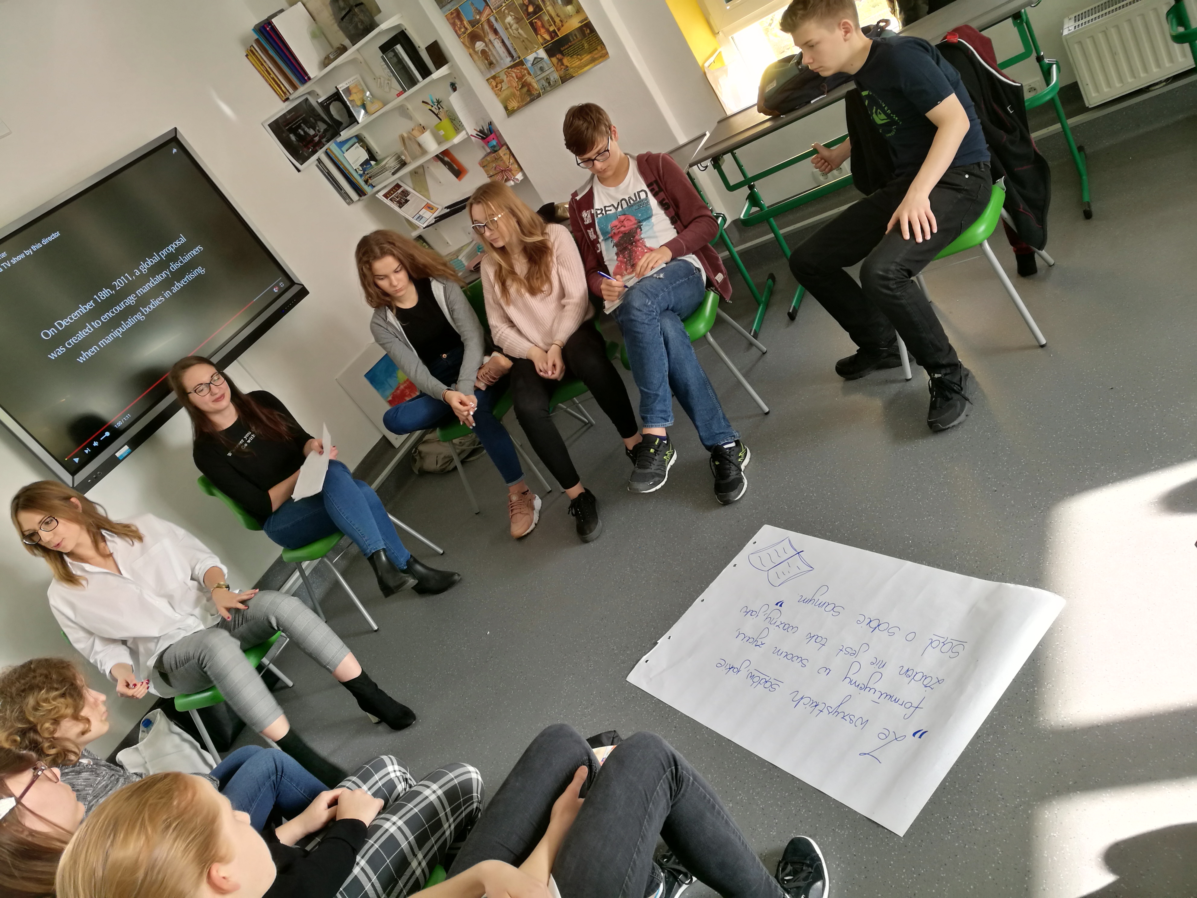 Uczniowie klasy 2 gimnazjum uczestniczyli w pierwszym z cyklu zaplanowanych warsztatów dotyczących problemów okresu dojrzewania. 26 października spotkali się ze specjalistkami z Centrum Zaburzeń Odżywiania. W czasie zajęć rozmawiali o wpływie mediów na kreowanie współczesnego kanonu piękna, dowiedzieli się, jak rozpoznać i rozróżnić choroby związane z zaburzeniami odżywiania oraz jakie instytucje pomagają osobom borykającym się z takimi problemami.