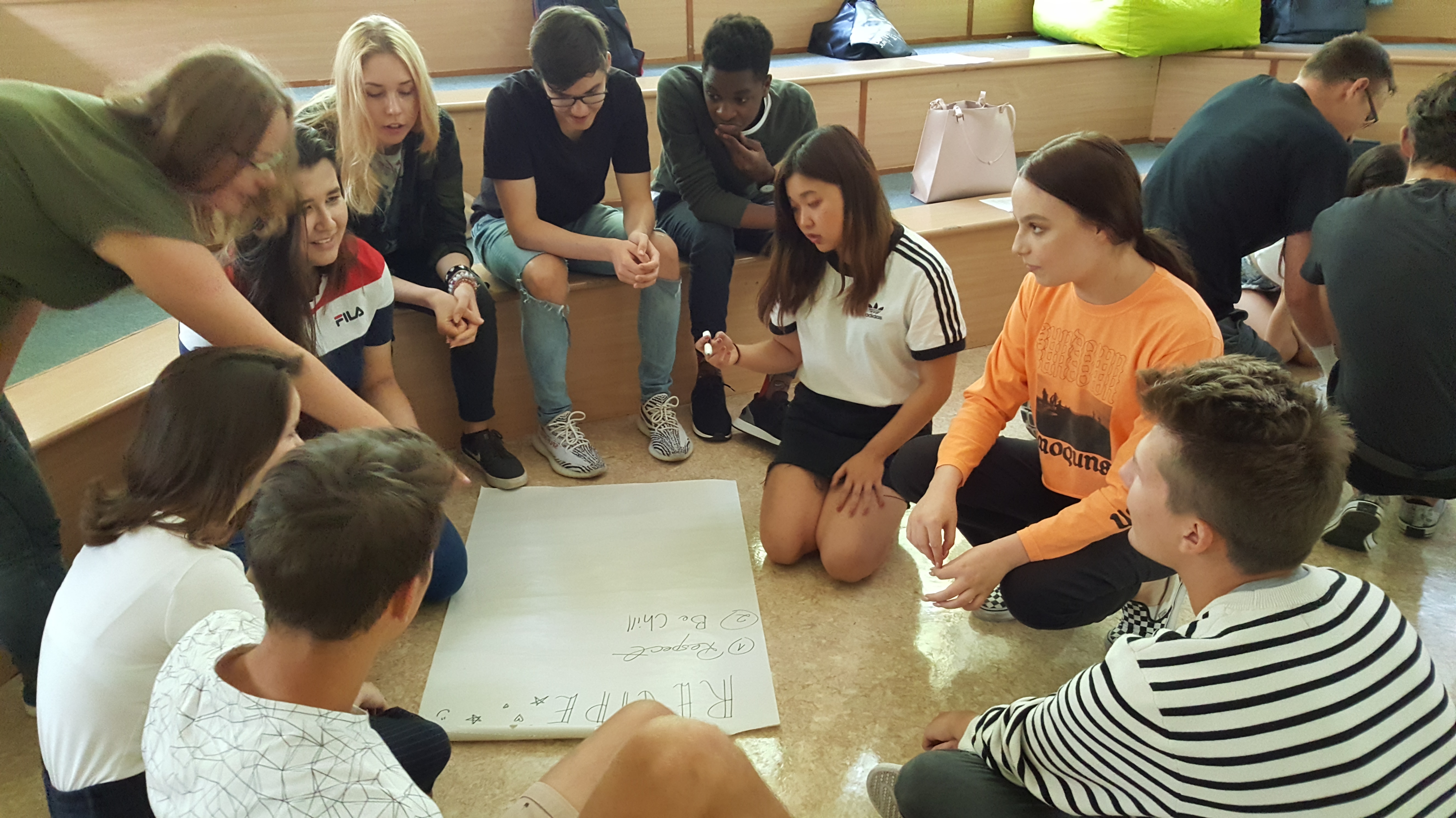 4 września 2018 roku w szkolnej auli pod opieką wychowawców i pani psycholog spotkali się uczniowie preIB, IB1, IB2, aby wspólnie – aktywnie i kreatywnie – poznać się i pobawić. Różne zabawy w grupach sprawdzały nie tylko komunikacyjne umiejętności, współdziałanie, ale też zbliżyły nieco nowych uczniów do programu Matury Międzynarodowej. Uczniowie układali między innymi przepisy na dobrą atmosferę w klasie, formułowali dziesięć przykazań IB – o czym pamiętać, na co uważać, do czego dążyć. Spotkanie było nie tylko efektywne, ale potwierdziło też poczucie humoru, dojrzałość i otwartość wielu młodych ludzi.