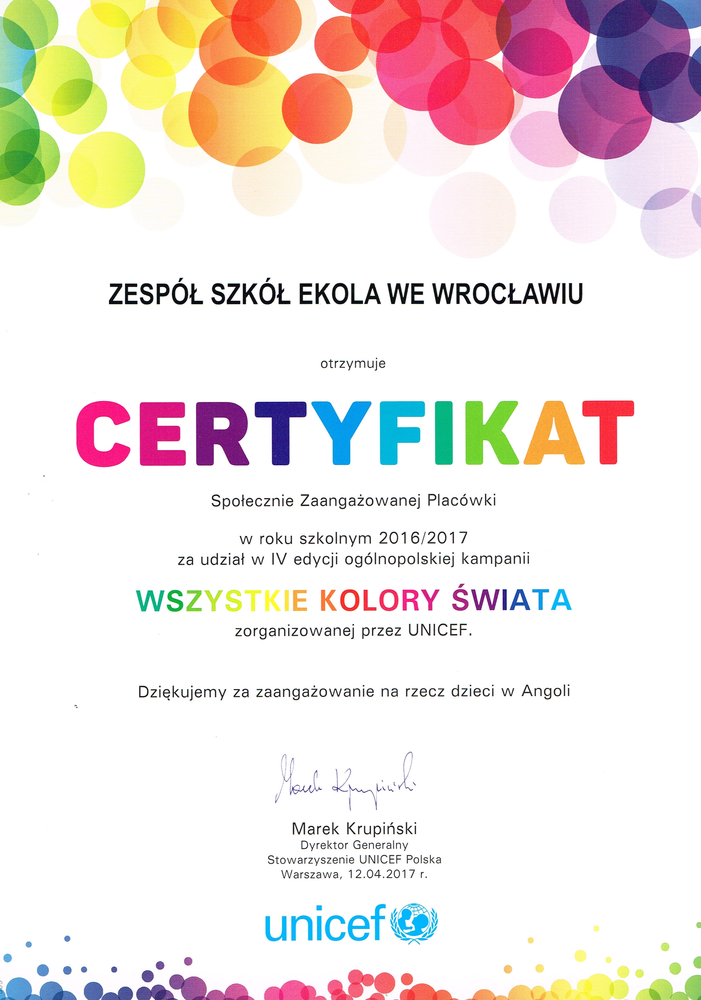 Dyrekcja i Grono Pedagogiczne Zespołu Szkół EKOLA