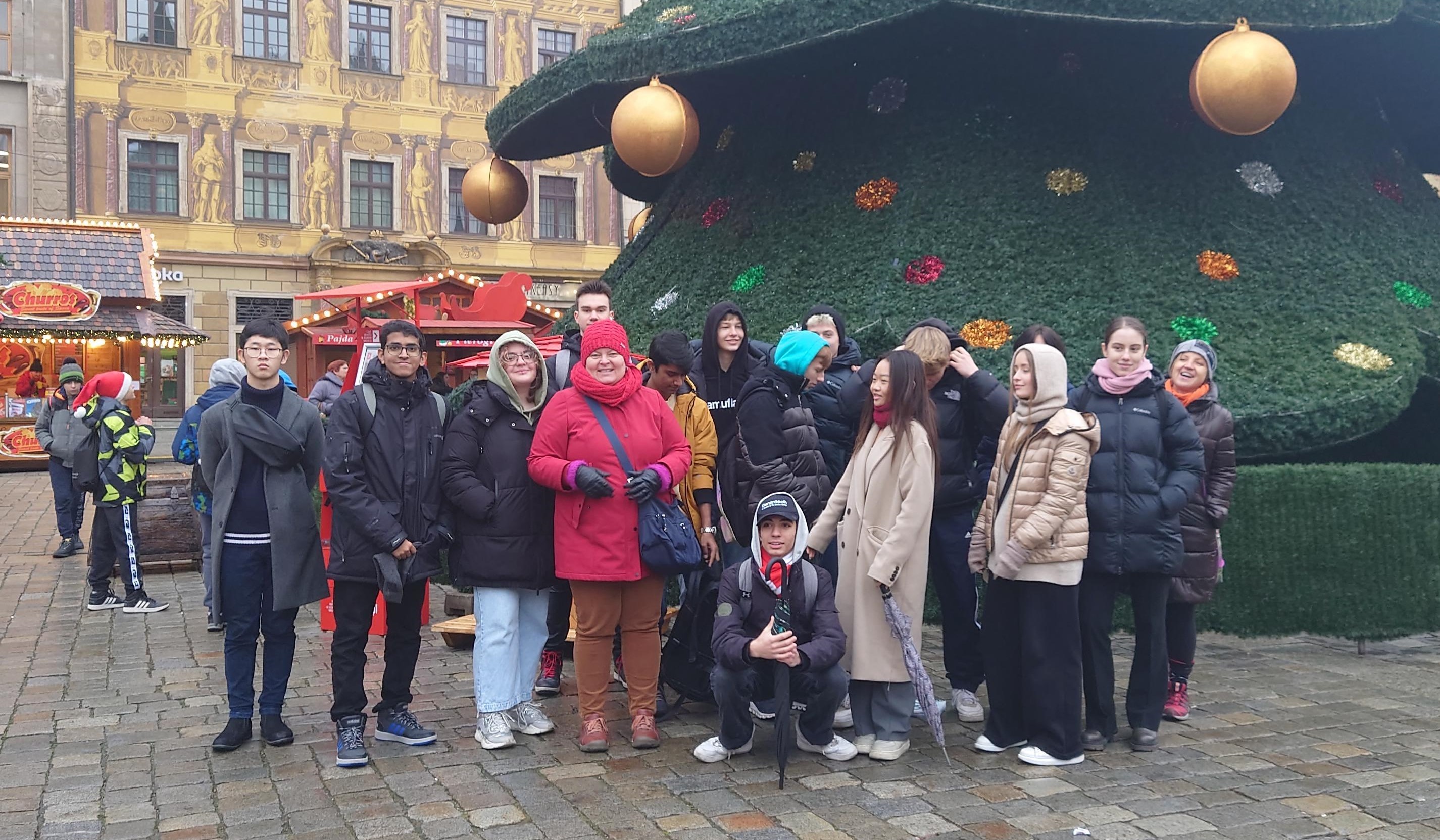 Uczniowie klasy DP1 tworzą międzynarodową społeczność i okres świąteczny to dla nich świetna okazja do rozmów o różnych tradycjach związanych z Bożym Narodzeniem i Nowym Rokiem. Wybrali się więc 6 grudnia na jarmark na wrocławskim Rynku nie tylko po to, aby poczuć atmosferę świąt, kupić prezenty, spróbować różnych potraw, ale także, aby pokazać koleżankom i kolegom z innych krajów piękną choinkę, szopkę, i przede wszystkim opowiedzieć o polskich świętach, powspominać te zapamiętane z dzieciństwa i ucieszyć się wspólnym spacerem.