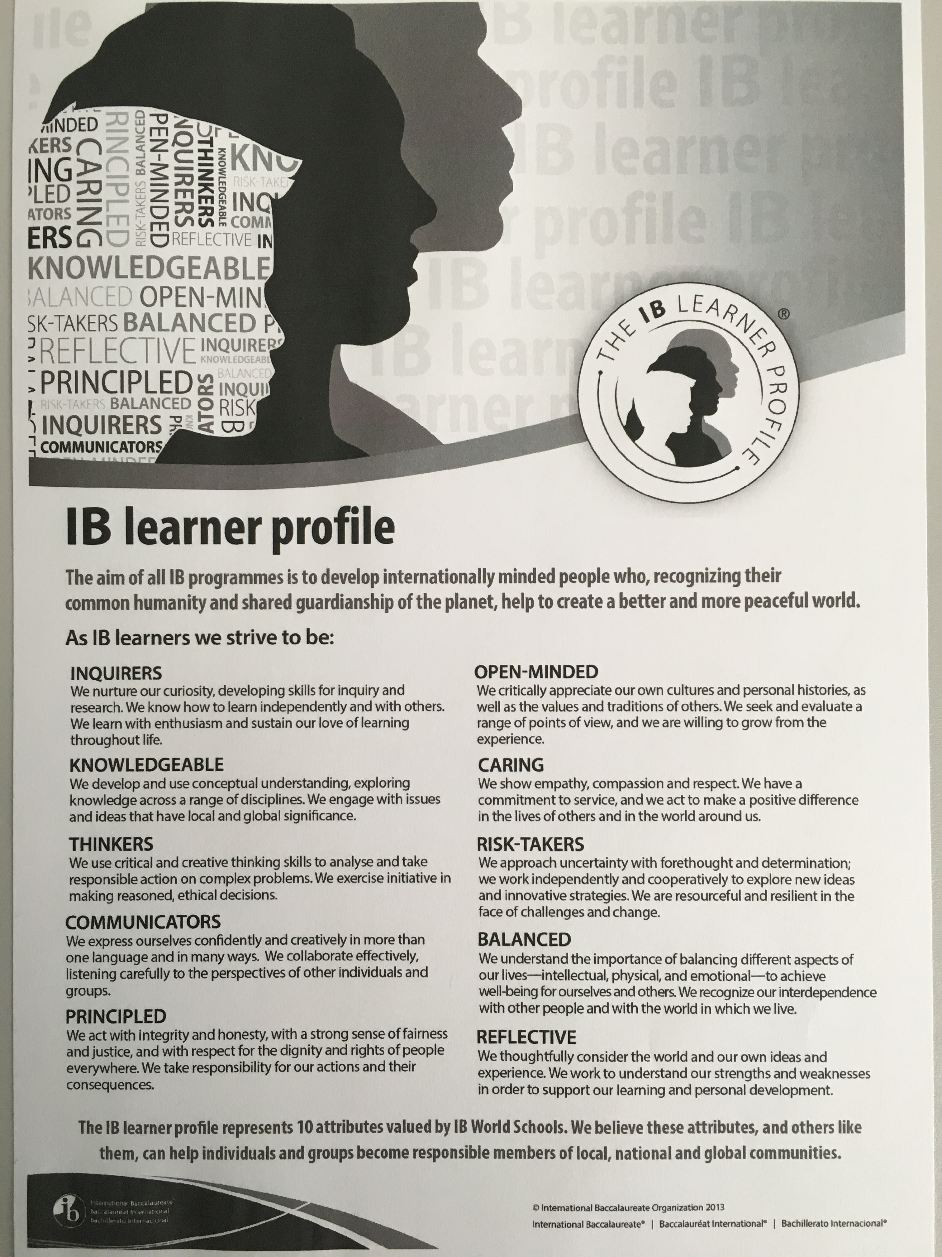 Dzięki programowi CAS uczniowie mają szansę rozwijać cechy zdefiniowane w profilu ucznia programu IB (IB learner profile, patrz niżej), twórczą osobowość oraz postawę otwartości i empatii w stosunku do innych. Doskonalenie umiejętności, postaw i talentów odbywa się poprzez różnorodne indywidualne oraz grupowe działania, które stwarzają możliwość zgłębiania zainteresowań, realizowania pasji, wyrażania własnej osobowości i perspektywy patrzenia na świat. CAS zapewnia wszechstronność wymagającego programu akademickiego, jakim jest IB Diploma, uczy samostanowienia i współpracy, daje poczucie spełnienia oraz satysfakcji.