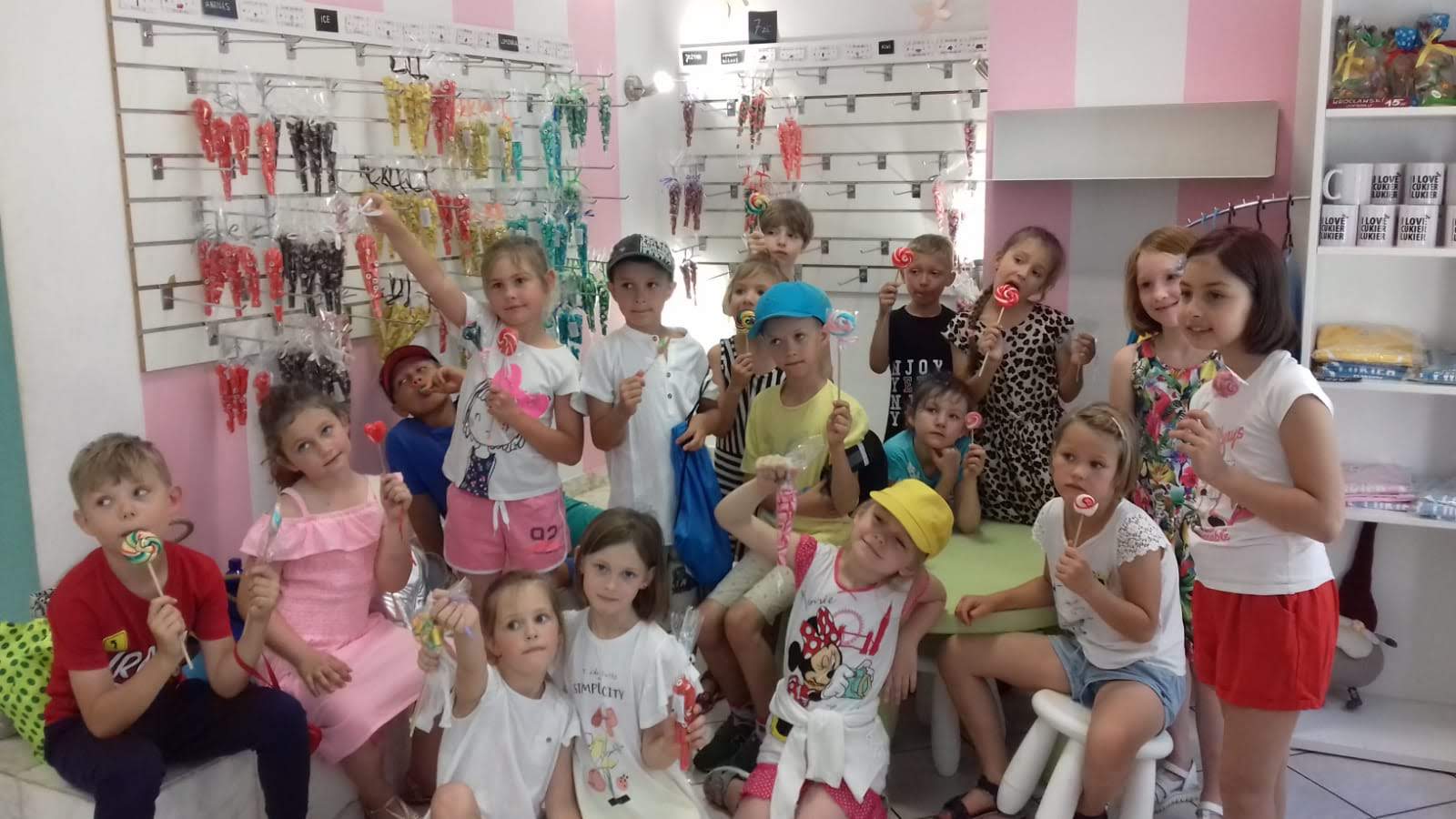 Świętowanie Dnia Dziecka w klasie drugiej odbyło się w manufakturze słodyczy Cukier Lukier i było dla dzieci miłą niespodzianką. Przygotowane własnoręcznie pod opieką pracownic kolorowe lizaki smakowały wybornie. Uczniowie otrzymali także cukierki, a niektórzy zakupili słodkie prezenty dla najbliższych. Szkoda, że Dzień Dziecka jest tylko raz w roku podsumowała wizytę w manufakturze jedna z uczennic. Rzeczywiście szkoda…