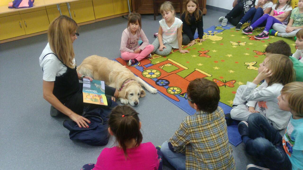 Do uczniów klasy 3a zawitał 28 września 2017 roku niezwykły gość – wraz z opiekunką odwiedziła ich dogoterapeutka Zuma. Dzieci wysłuchały cennych informacji na temat postępowania z psem, rozumienia jego zachowań oraz właściwego reagowania na nieznane zwierzę. Dowiedziały się, na czym polega dogoterapia, a każdy uczeń mógł przećwiczyć właściwe zachowanie i poznać bliżej Zumę, która w szkole czuła się swobodnie ku radości wszystkich dzieci.