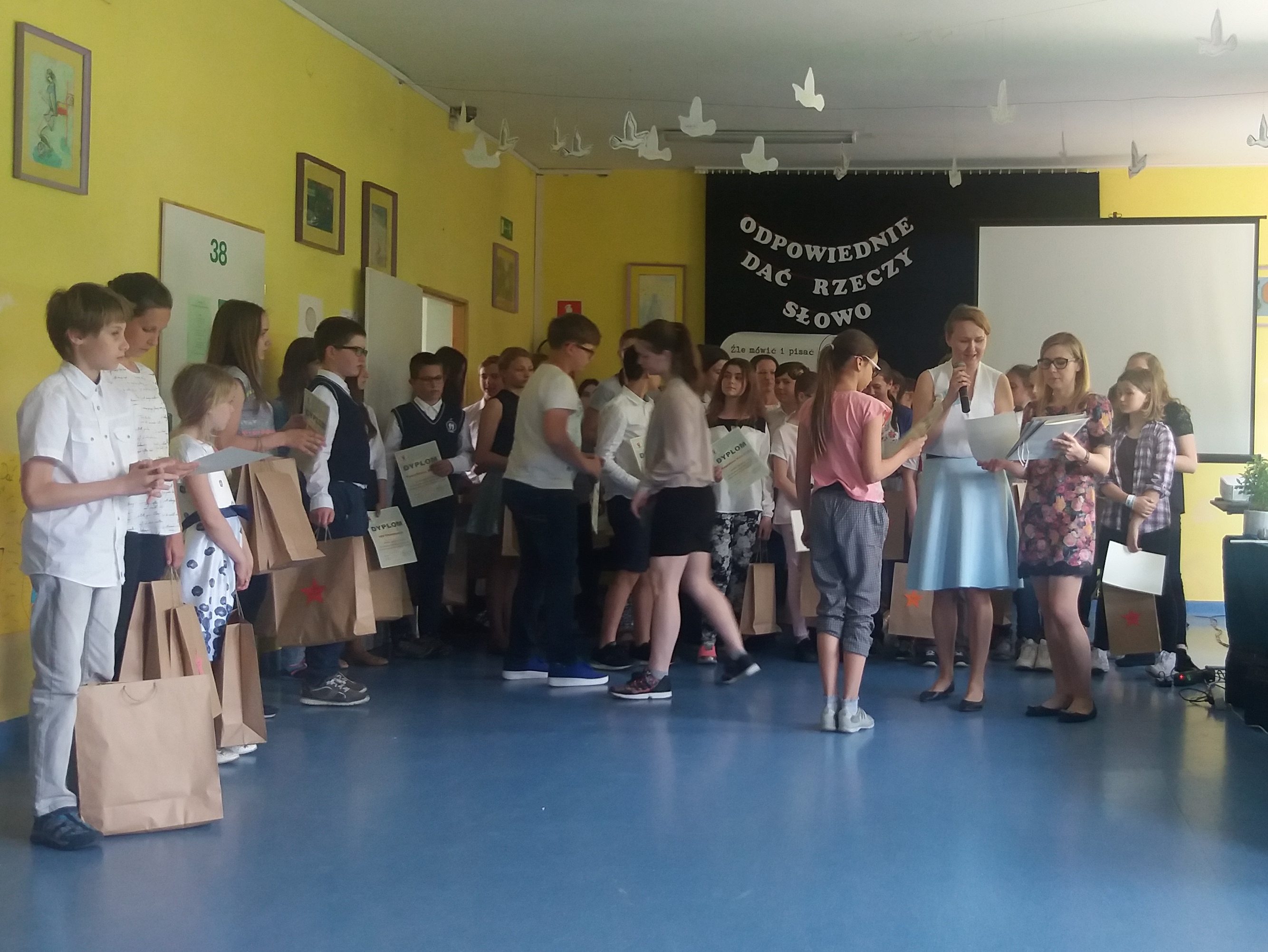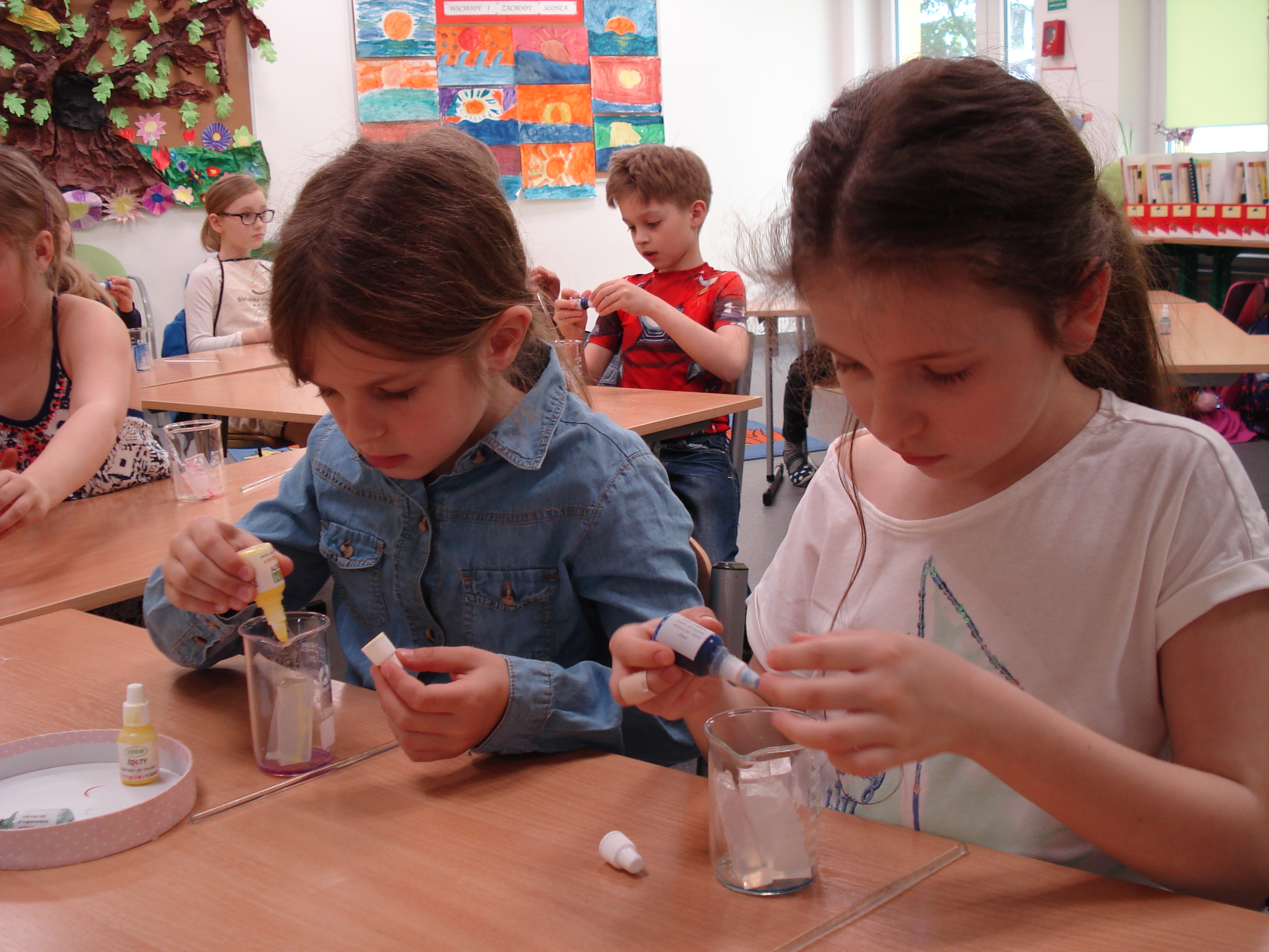 Uczniowie z wszystkich klas edukacji wczesnoszkolnej wzięli udział w warsztatach mydlarskich, w czasie których z gliceryny, barwników, zapachów, po wybraniu odpowiednich dwóch foremek, robili mydło dla mamy i taty. Gdy masa zastygła, dzieci mogły podziwiać efekty swojej pracy – pachnące mydlane owady, kwiaty, owoce.