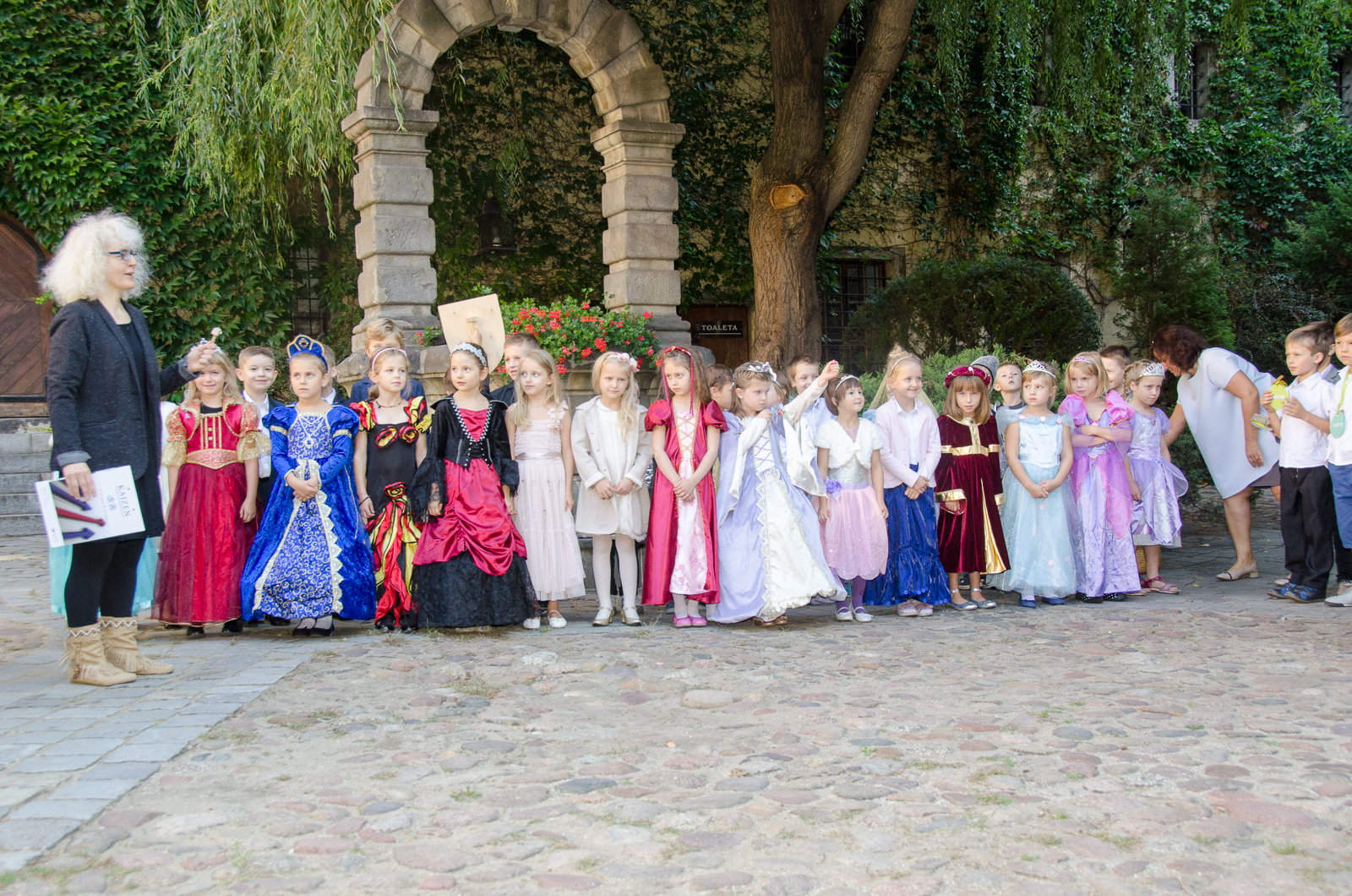 17 września dziedziniec zabytkowego Arsenału zapełnił się damami w długich sukniach, rycerzami w zbrojach i z tarczami, oraz tłumami rodziców. Po powitaniu gości przez panią prezes Jolantę Węglowską oraz panią dyrektor Joannę Lejzę dzieci zatańczyły do piosenki „Dzień dobry szkoło”, a potem odśpiewały żartobliwy utwór pt. „Ślubowanie”. Starsi koledzy z klasy drugiej i trzeciej przekonywali kandydatów na uczniów EKOLI, że zostanie zarówno rycerzem, jak i uczniem to wyzwanie, dlatego najmłodsi najpierw musieli zdać egzamin. Dzieci celująco znały odpowiedzi na wszystkie pytania zawarte w wierszu „Kto ty jesteś?”. Wiele uśmiechu wzbudziły kotyliony z napisem WITAJ W EKOLI wykonane przez starszych kolegów i wręczone maluchom w trakcie uroczystości.