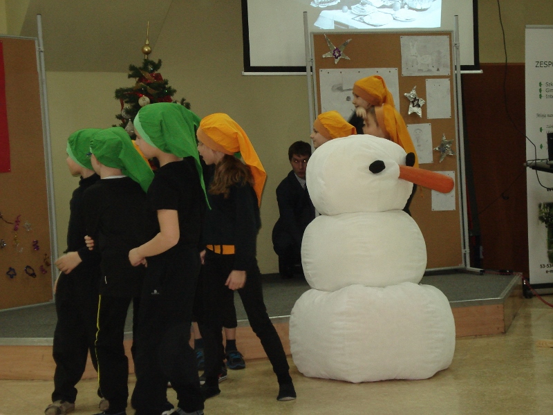 Najpierw trzecioklasiści wprowadzili wszystkich w świąteczny nastrój kolędą wygraną na chromatycznych dzwonkach (nieco później zaprezentowali oni „Jasełka”). Najmłodsi uczniowie przedstawili teatralne etiudy „Życzenia świąteczne”, a drugoklasiści „Bałwany”. Najważniejsza część spotkania to opłatek, najpiękniejsza to wspólne kolędowanie, a najsmaczniejsza – poczęstunek przygotowany przez rodziców. Wśród gości był pan Idryssa Sanoggo z dziećmi, którego zachwyciła uroczystość, ale na pewno nie był jedyny.