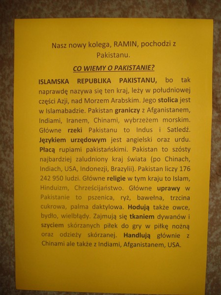 Klasa 2b - powitanie kolegi z Pakistanu