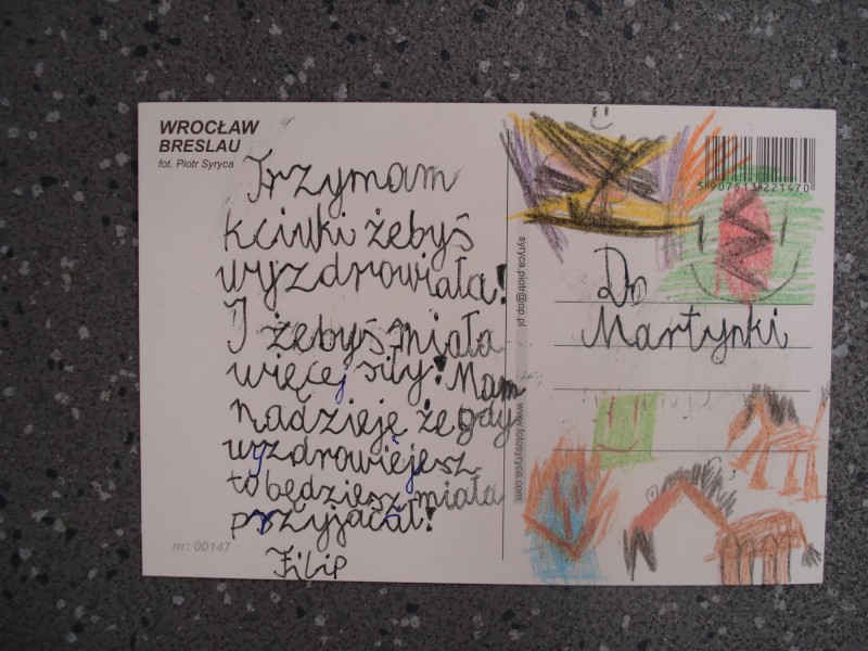 Klasa 2b - Tydzień Życzliwości - kartki do Martynki i Tobiasza