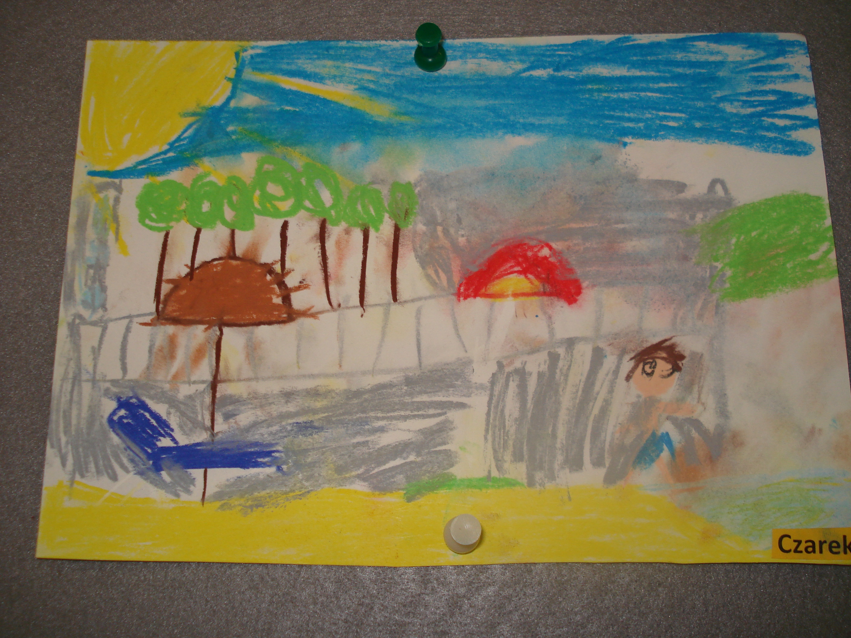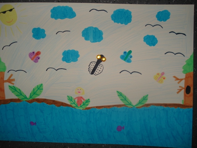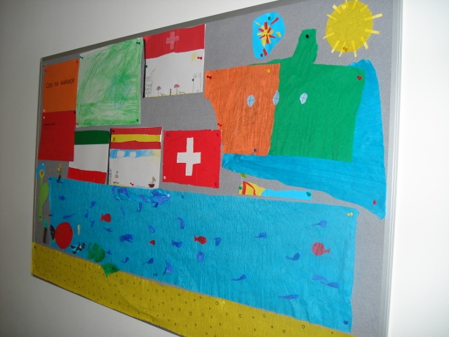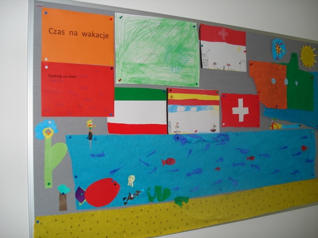 Wreszcie WAKACJE! Oto wspólna praca plastyczna uczniów klasy 1b wykonana na zakończenie roku szkolnego: