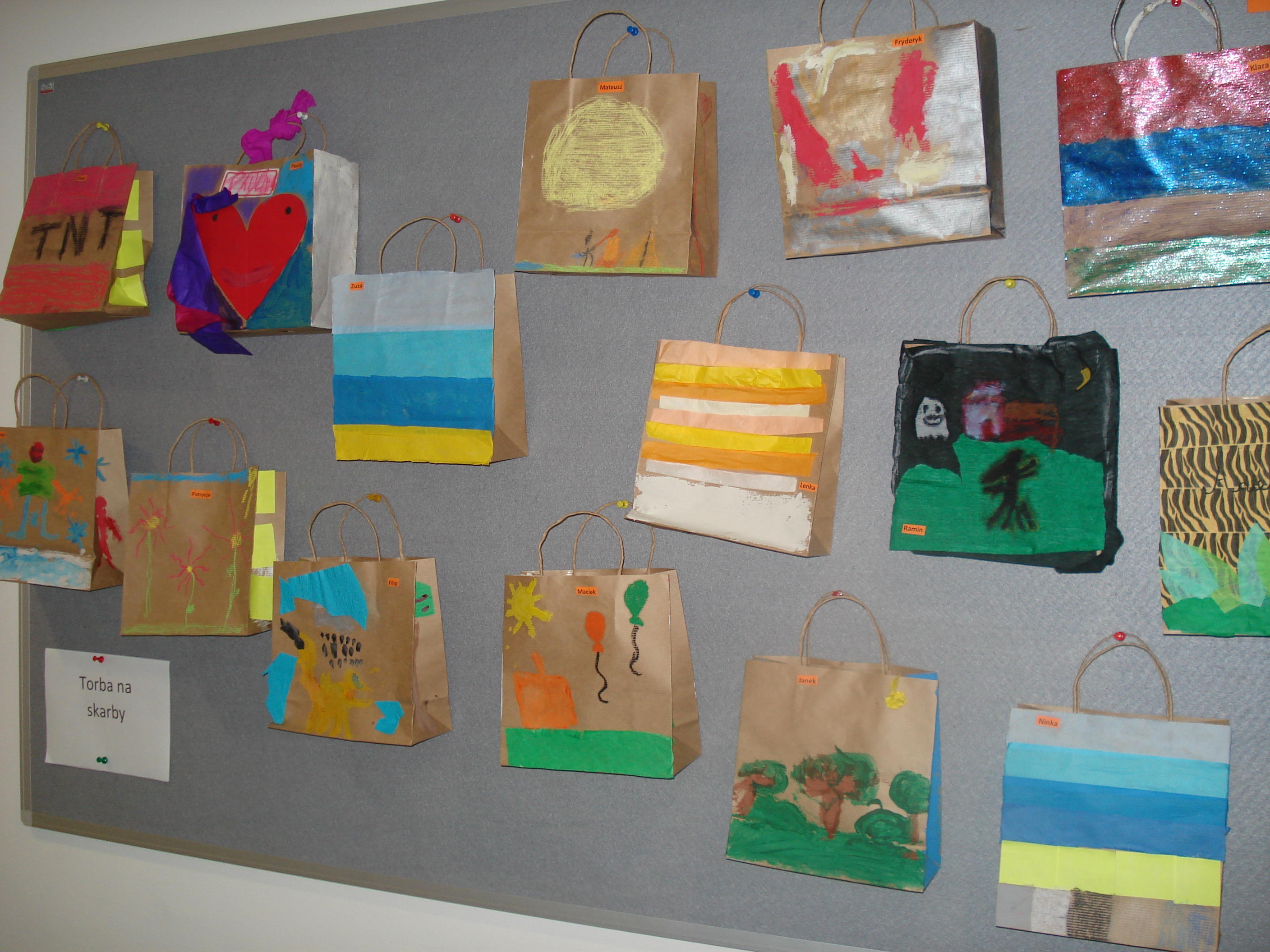 Każdy z nas ma swoje skarby. Zwłaszcza dzieci mają ich zwykle bardzo wiele. Czasem jest to kawałek sznurka, kolorowe piórko, patyczek wykrzywiony starością. Wszyscy potrzebujemy więc skarbca w którym można dobrze ukryć nasze skarby. Dlatego na zajęciach projektowych w klasie 2b, dzieci będące za pan brat z fantazją, przeobraziły zwykłe szare torebki z uszami na ... barwne skarbczyki. Kilka prac do obejrzenia poniżej, a reszta w galerii - zapraszamy.