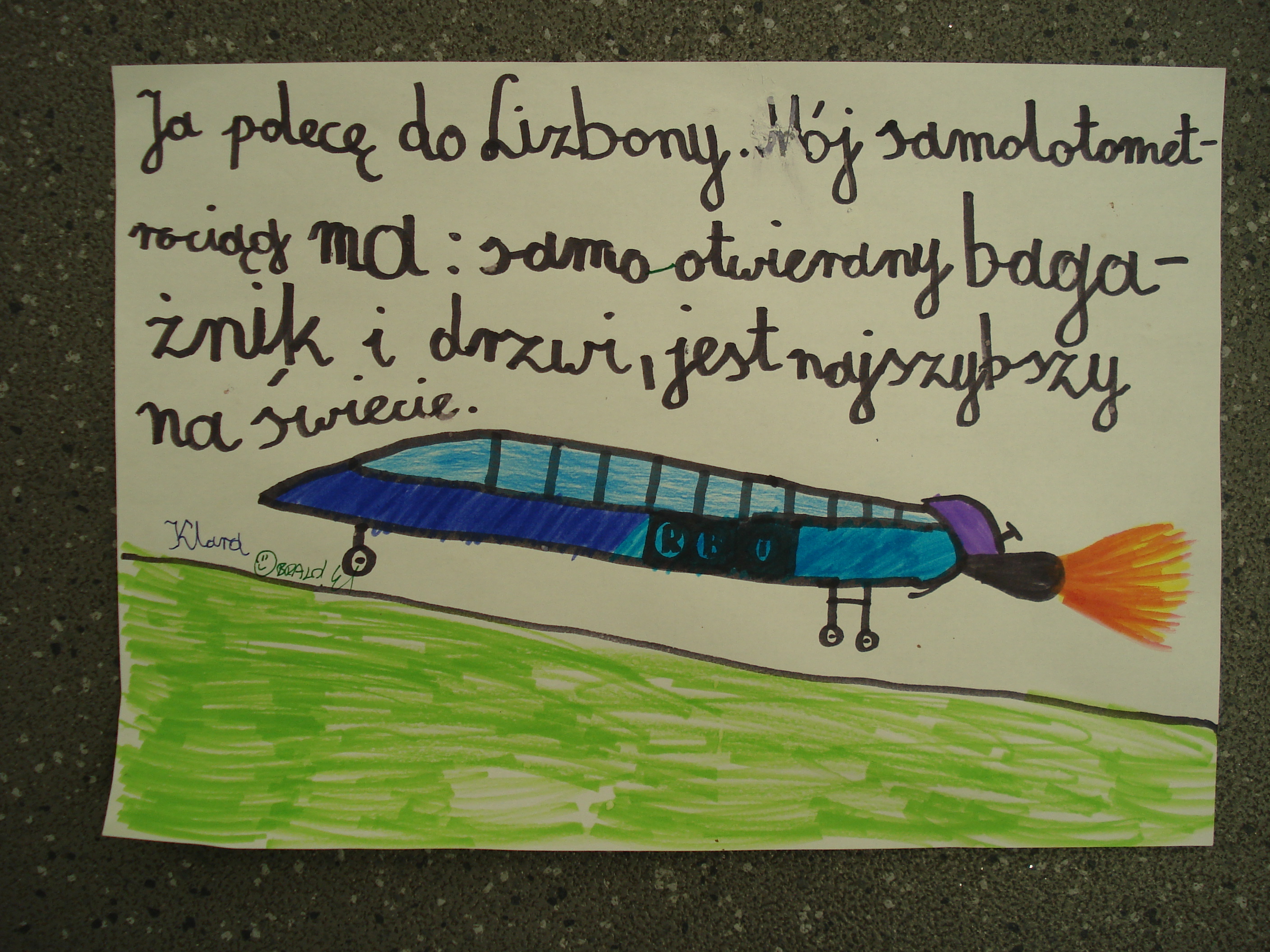Wakacje tuż, tuż... Nic więc dziwnego, że klasa 2b podjęła temat wakacyjnego transportu. Ale nie byle jakiego! Dzieci wymyślały różne nietuzinkowe metody przemieszczania się w przestrzeni. Wszystko co nie było zabronione, było dozwolone. W ruch poszła fantazja dzieci. Oj, gdyby choć małą część tych pomysłów można było zrealizować...!!! Rośnie nam wspaniałe pokolenie fantastów. Sami popatrzcie:
