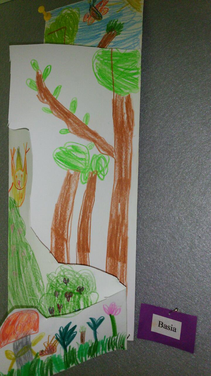 Pozostając przy leśnych tematach, prezentujemy prace klasy 2a pt. "Warstwy lasu", tutaj i w galerii: