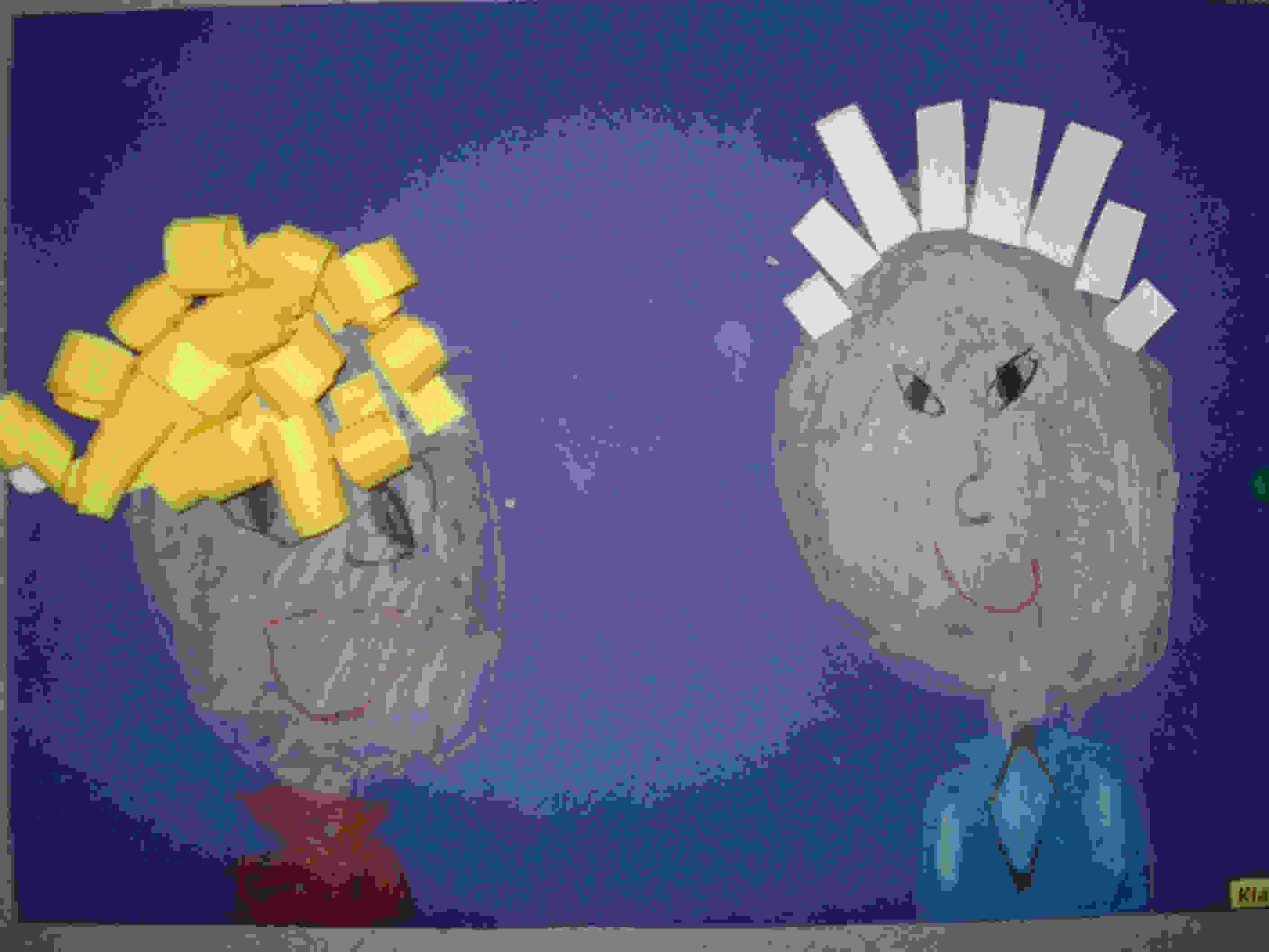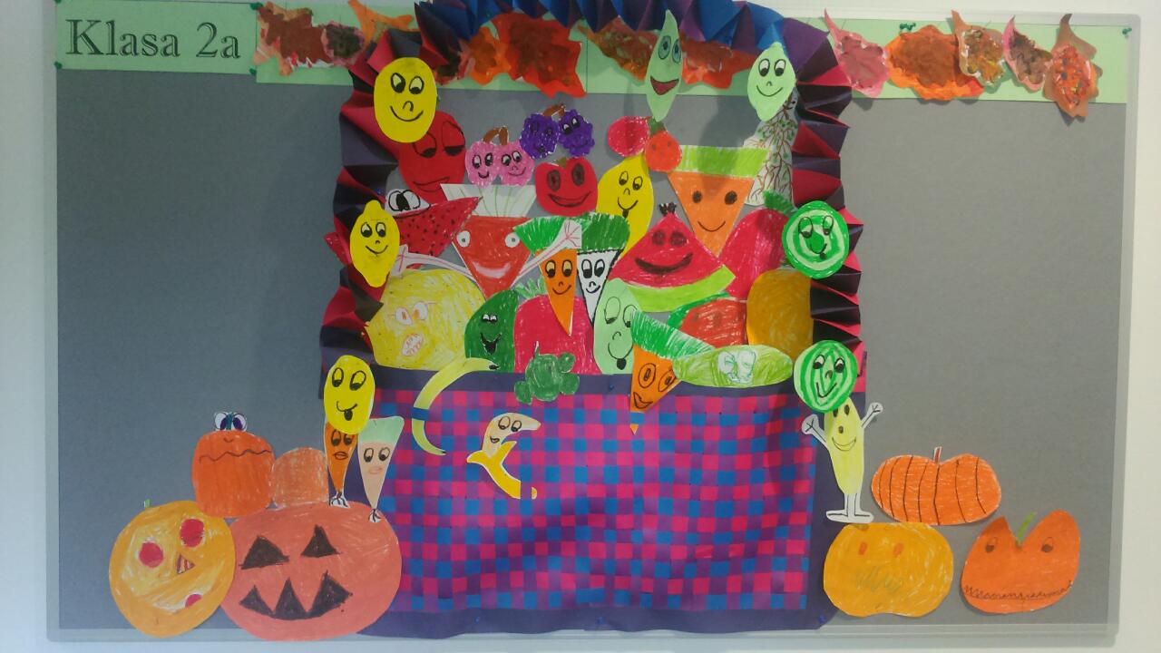 Klasa 2a, nie zważając na deszczową aurę, dostrzega i zachwyca się pięknem jesieni. Kolorowe liście na drzewie, rozbrykane, radosne warzywa i owoce przypominają dzieciaki z naszej klasy. Każdy inny, niepowtarzalny, a razem tworzą barwną, całkiem już nieźle zgraną drużynę. A że czasami rozbrykane...? Nadają się do schrupania... jak jesienne przysmaki. Świeże, słodkie i zdrowe. Mówią, że p. Marta wyciska z nich wszystkie soki. "No tak - wszystko co najlepsze...", odpowiada wychowawczyni: