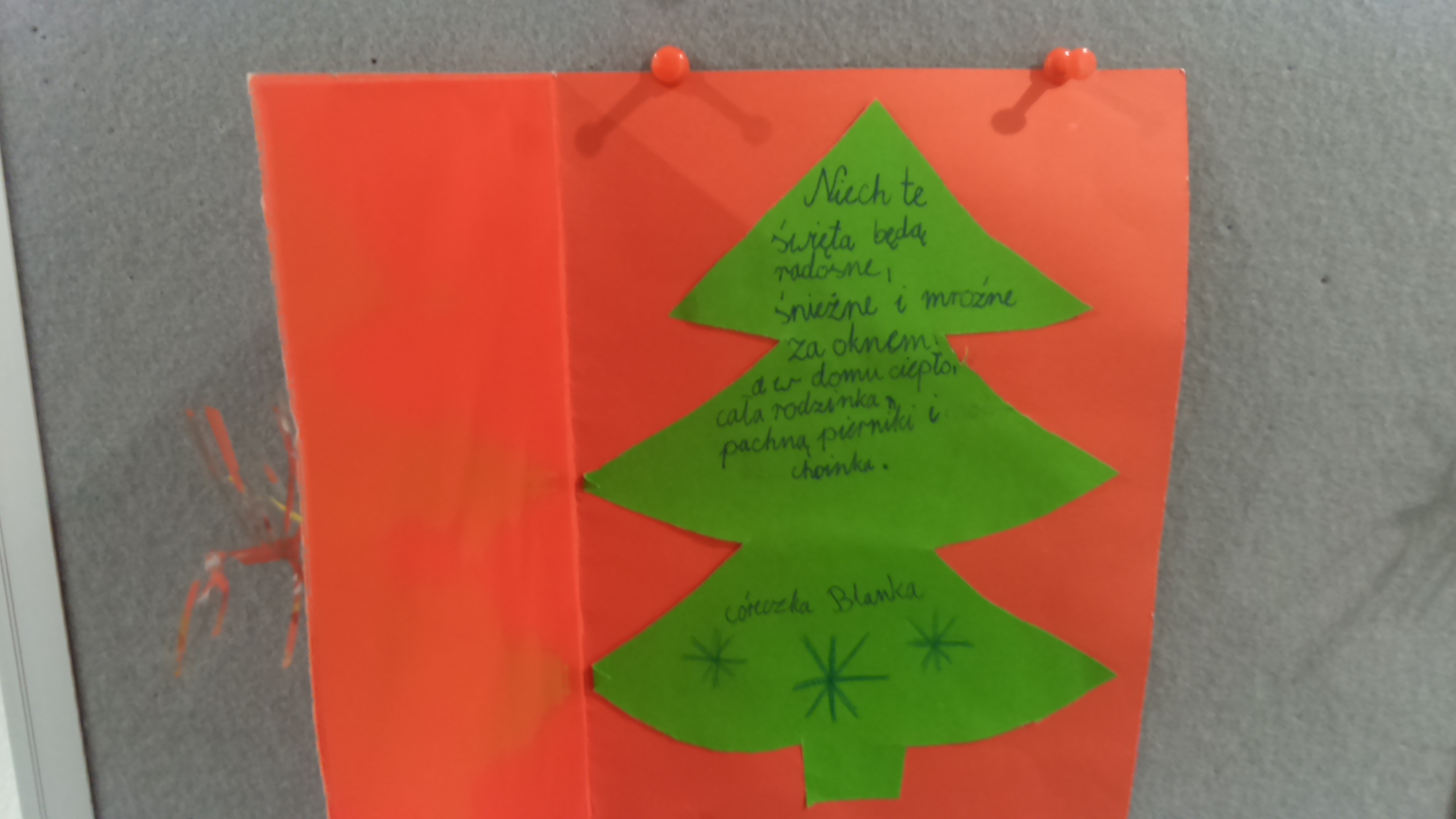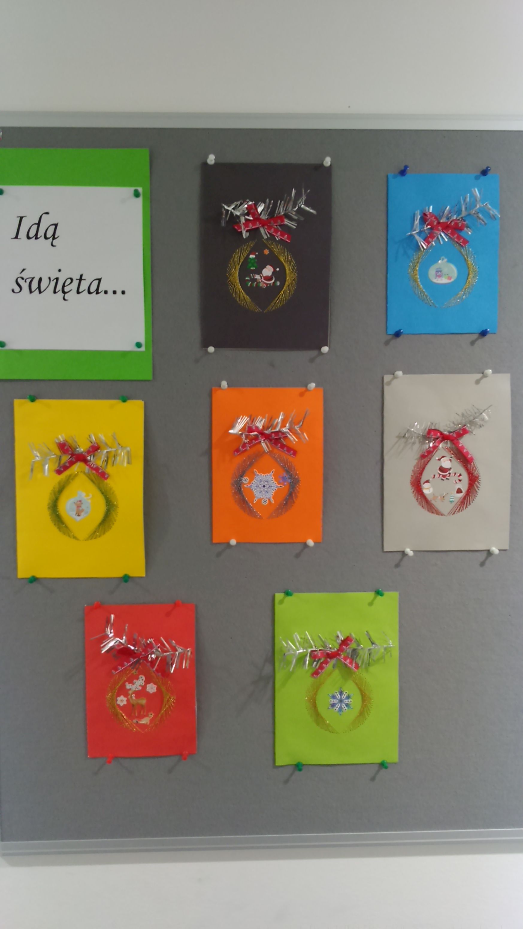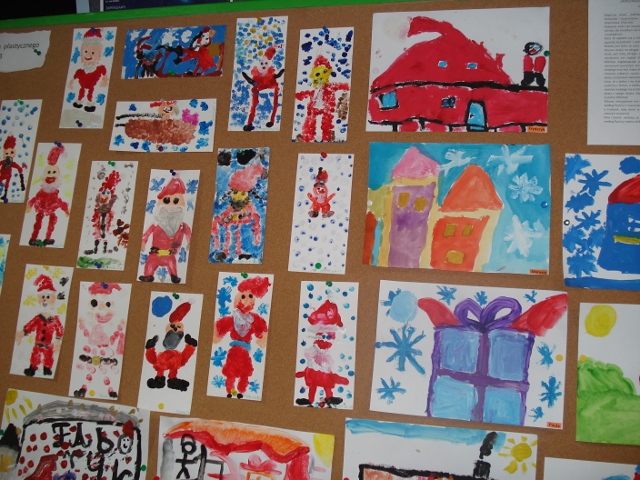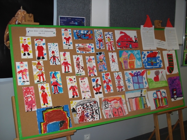 Tuż przed świętami tablica plastyczna klasy 3b zaroiła się choinkami. Wszystkie pięknie ozdobione, kolorowe, pachnące. Cóż, idą święta, a klasa 3b o nich pamięta :)