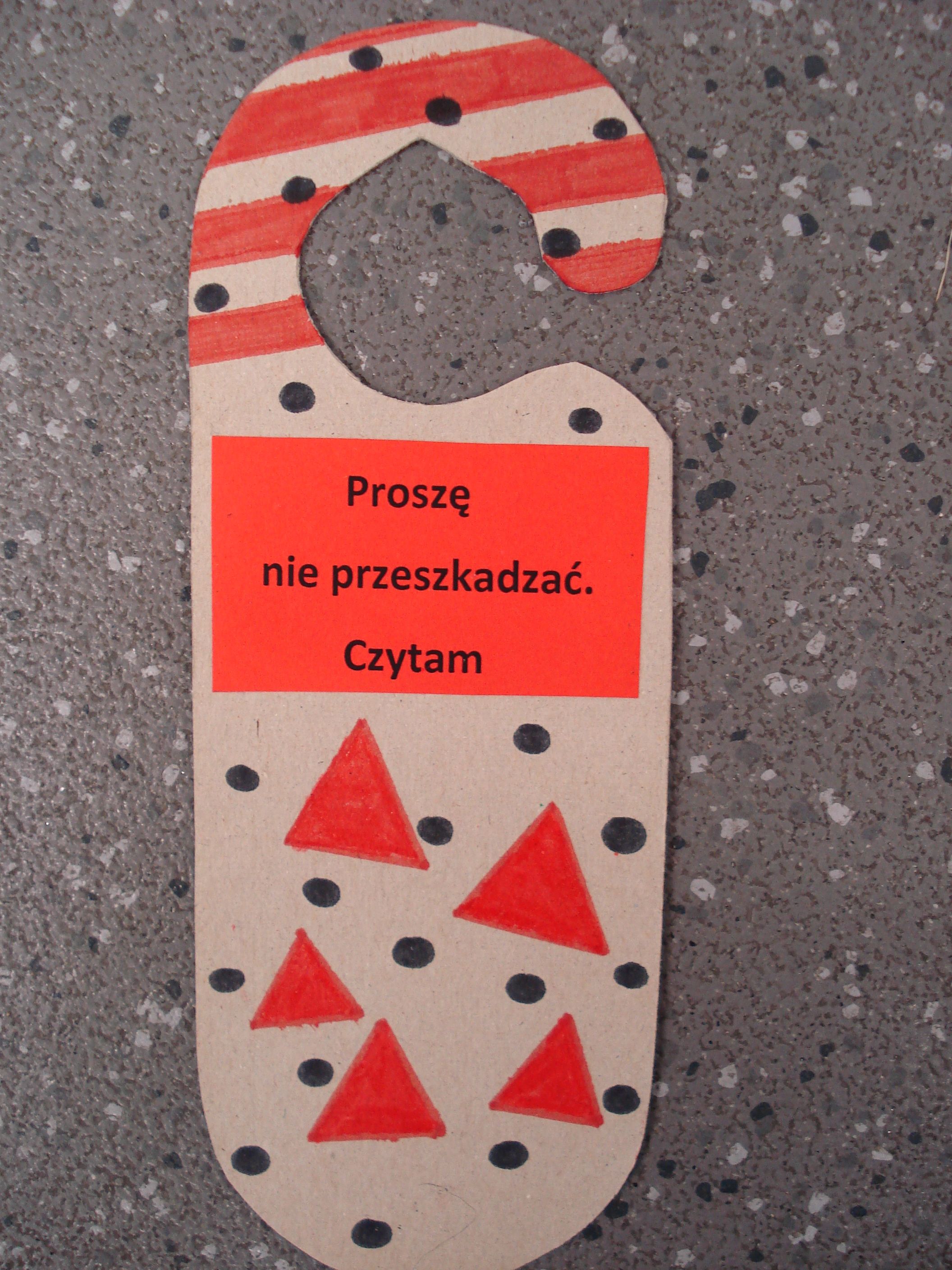 Uczniowie klasy 3b lubią czytać. Aby jednak poprawić komfort czytania, postanowili przygotować specjalne zawieszki informujące całe otoczenie, że aktualnie wyniesienie śmieci jest absolutnie niewykonalne, bo CZYTAM! Ale po czytaniu zawsze zostaje trochę czasu, więc na zawieszce z drugiej strony pojawiło się zaproszenie do wejścia do pokoju. Spróbujcie, to naprawdę DZIAŁA!
