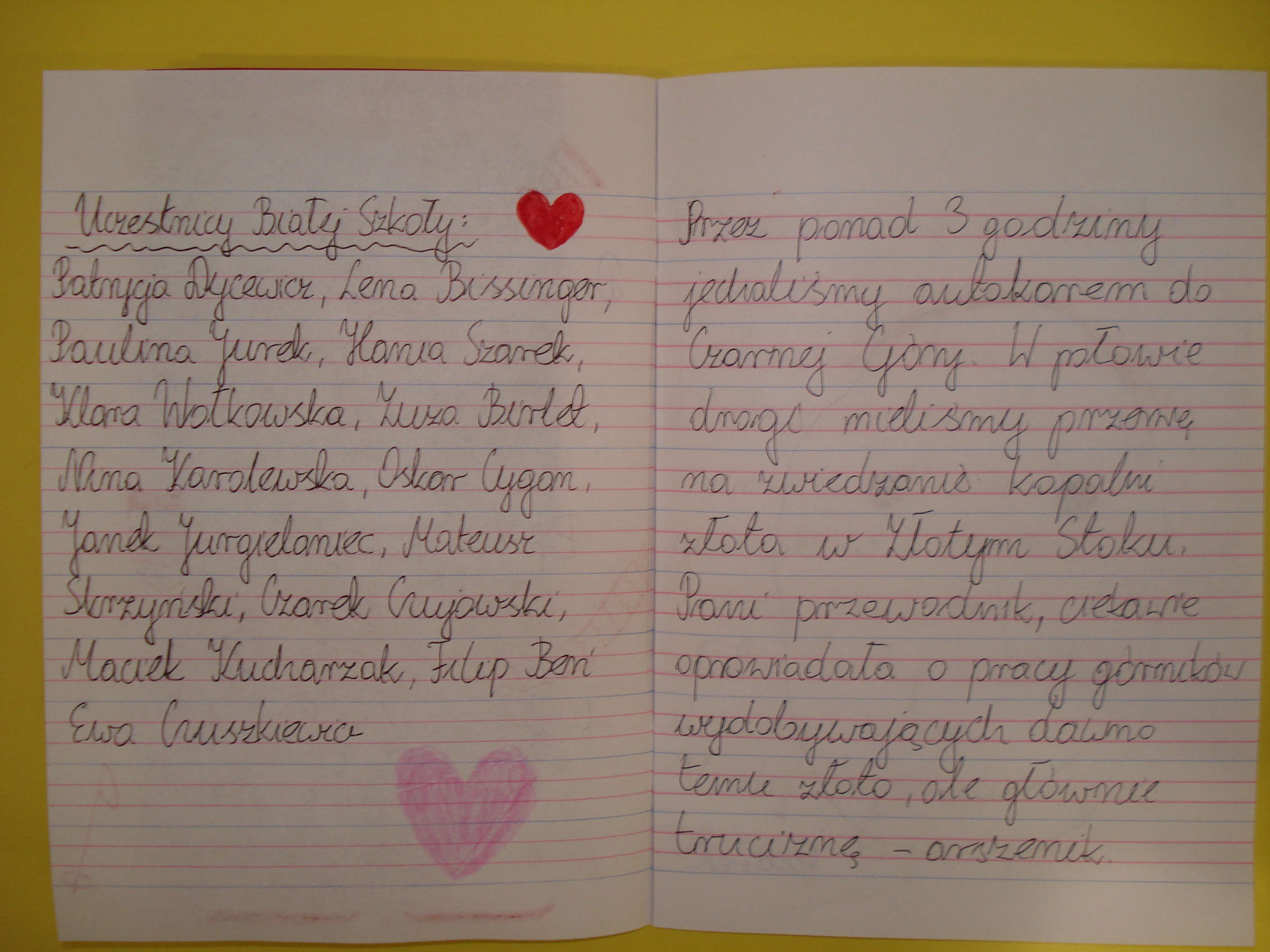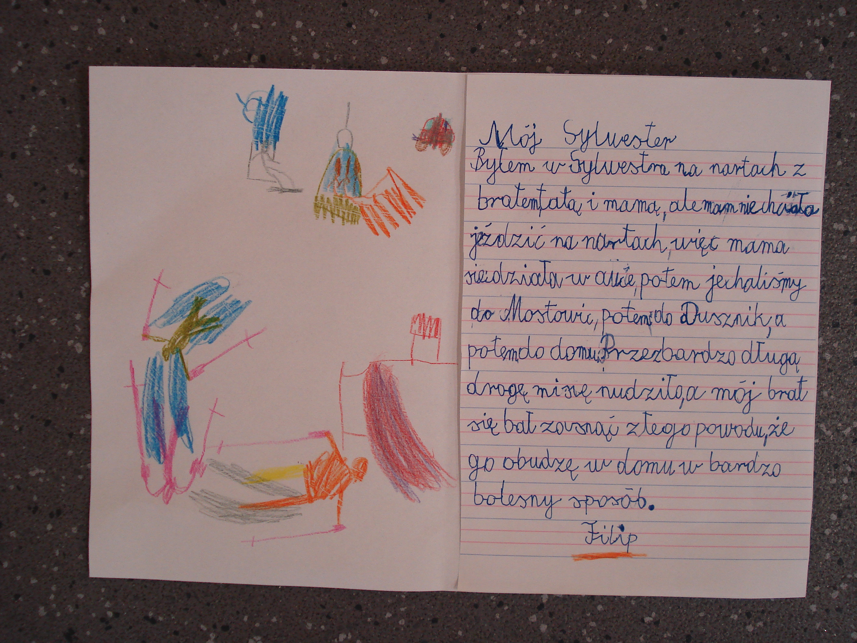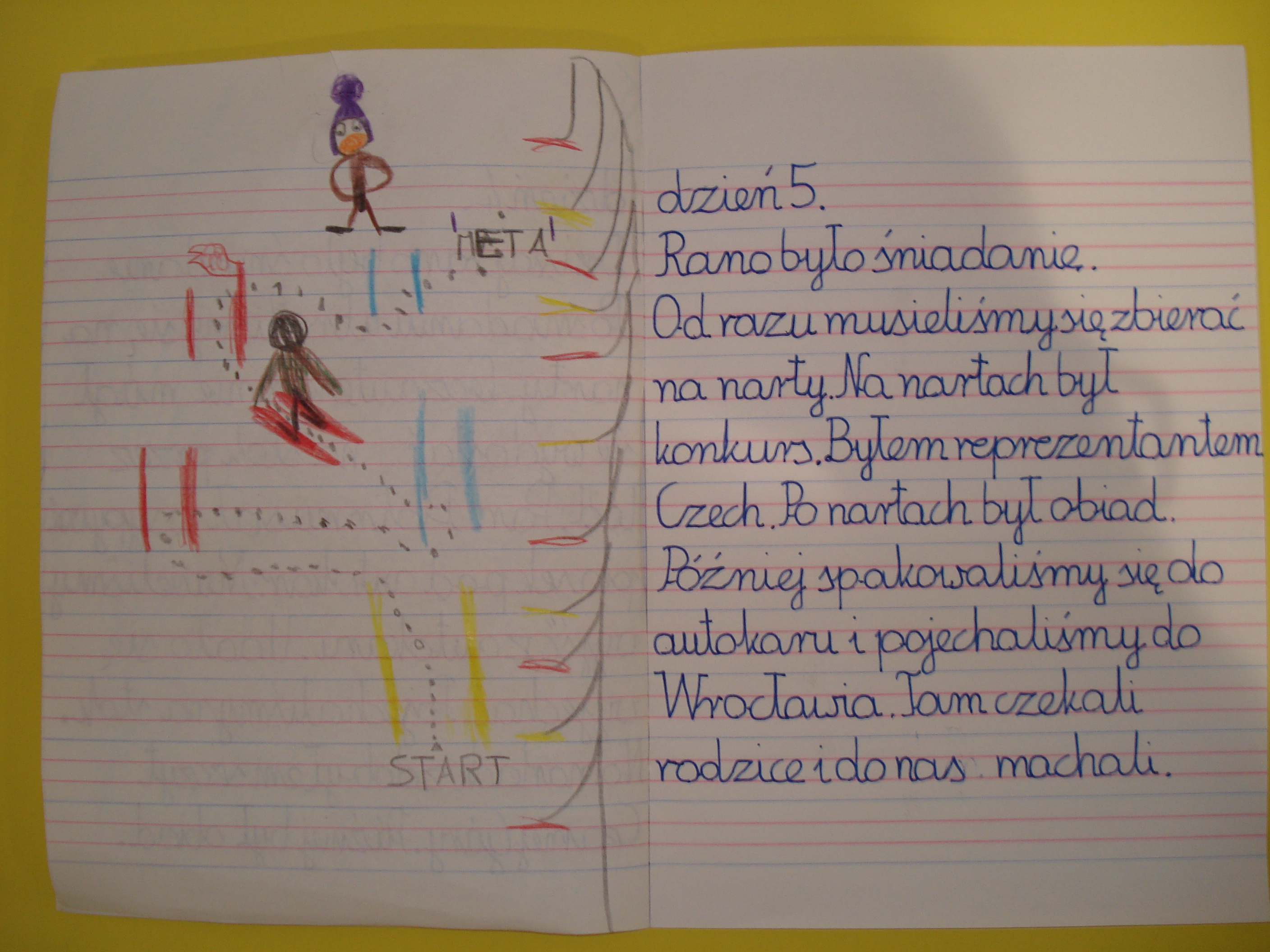 Dzieci z klasy 2b spędziły razem z kolegami z klas 2a i 3 cały tydzień na Białej Szkole w Czarnej Górze (zdjęcia tutaj). Prócz zabawy na śniegu i intensywnej nauki jazdy na nartach, codziennie pisały własny Dziennik z podróży. Tym sposobem powstało 13 historycznych zapisków małych podróżników plus 1 wychowawczyni, przeznaczony dla tych, którzy nie pojechali z klasą. Poczytajcie jak było....