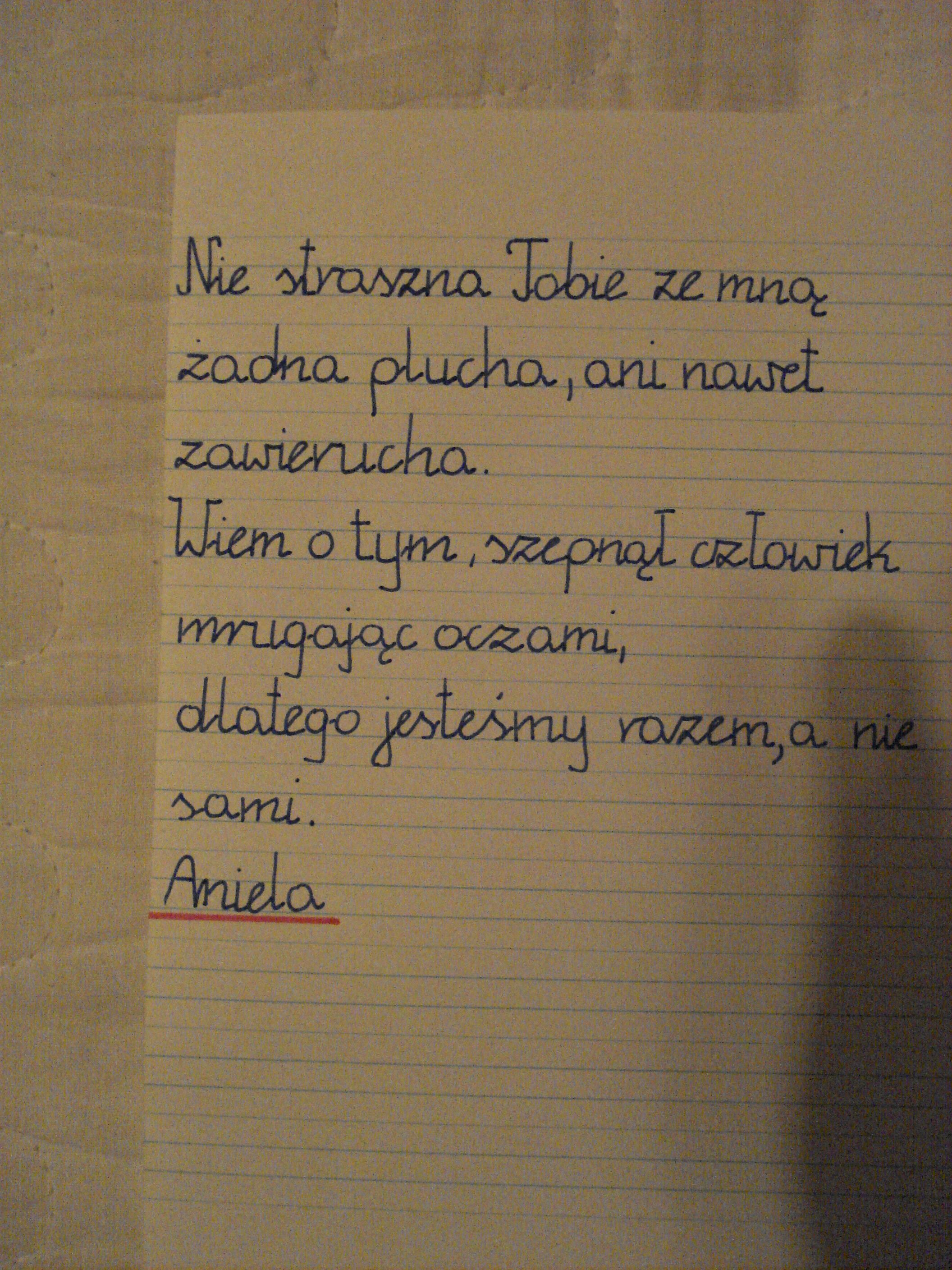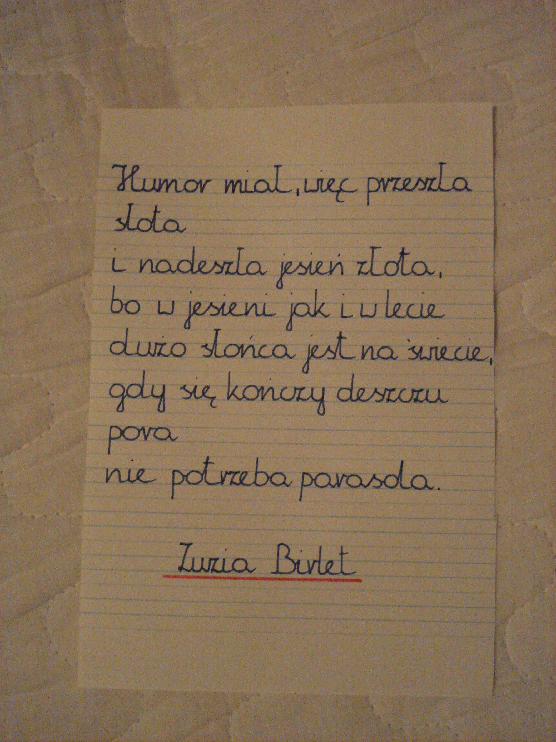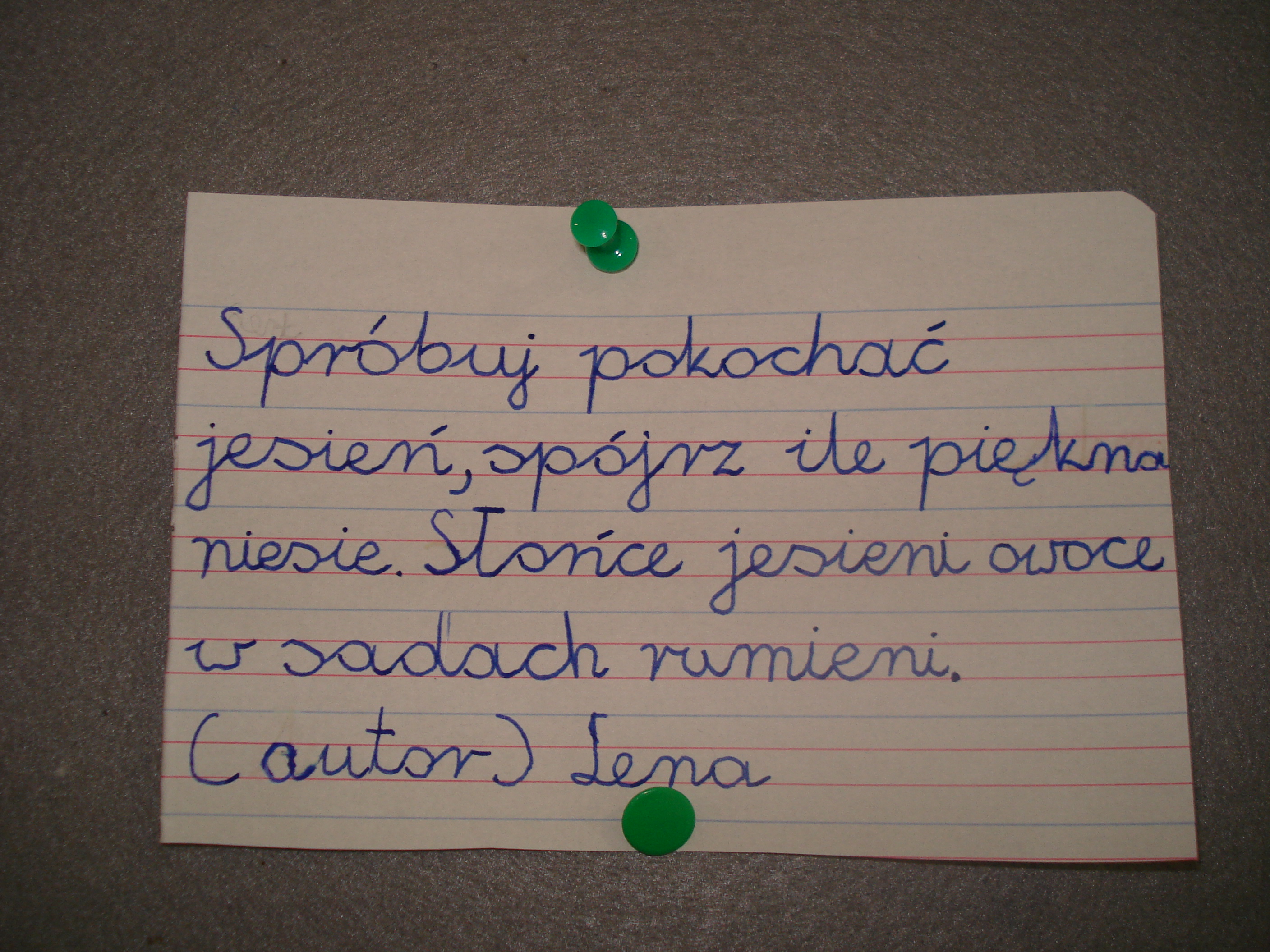 A tak rodzi się poezja: uczniowie klasy 3b natchnieni weną twórczą, zastąpili poetów - Danutę Wawiłow i Elżbietę Pałasz - i napisali ciągi dalsze ich dwóch wierszy. Poczytajcie i oceńcie sami...