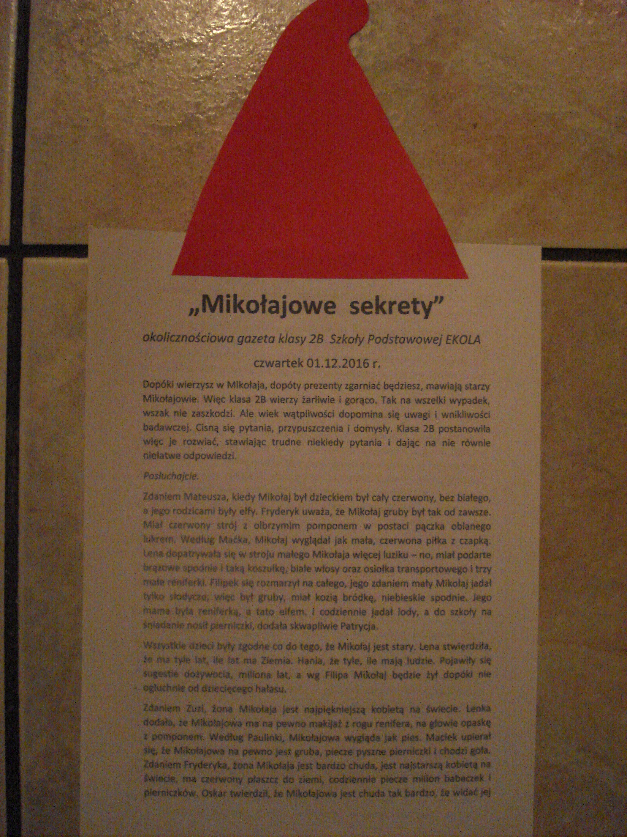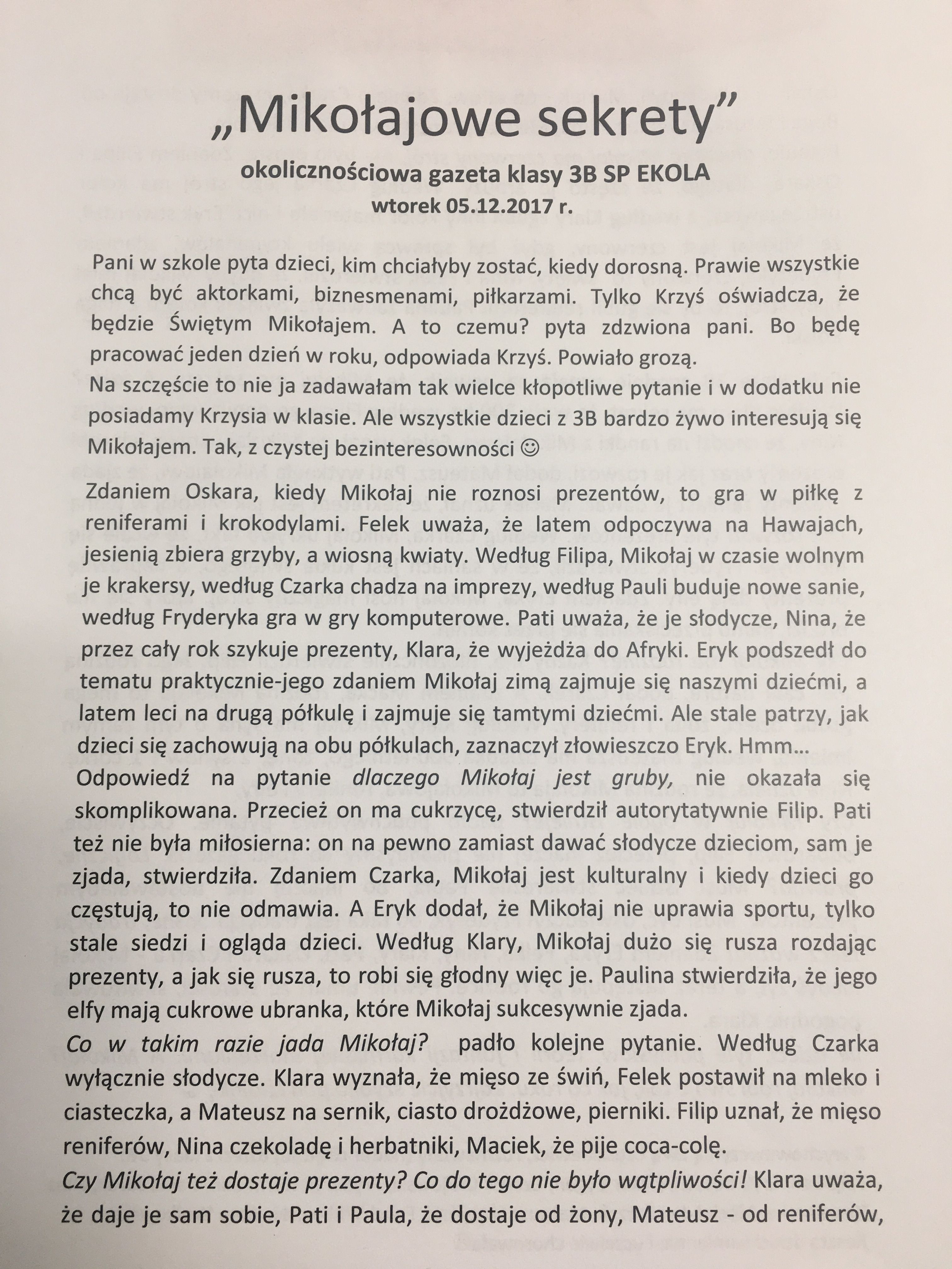 Oto okolicznościowa gazetka klasy 3b - "Mikołajowe Sekrety", miłej lektury :)