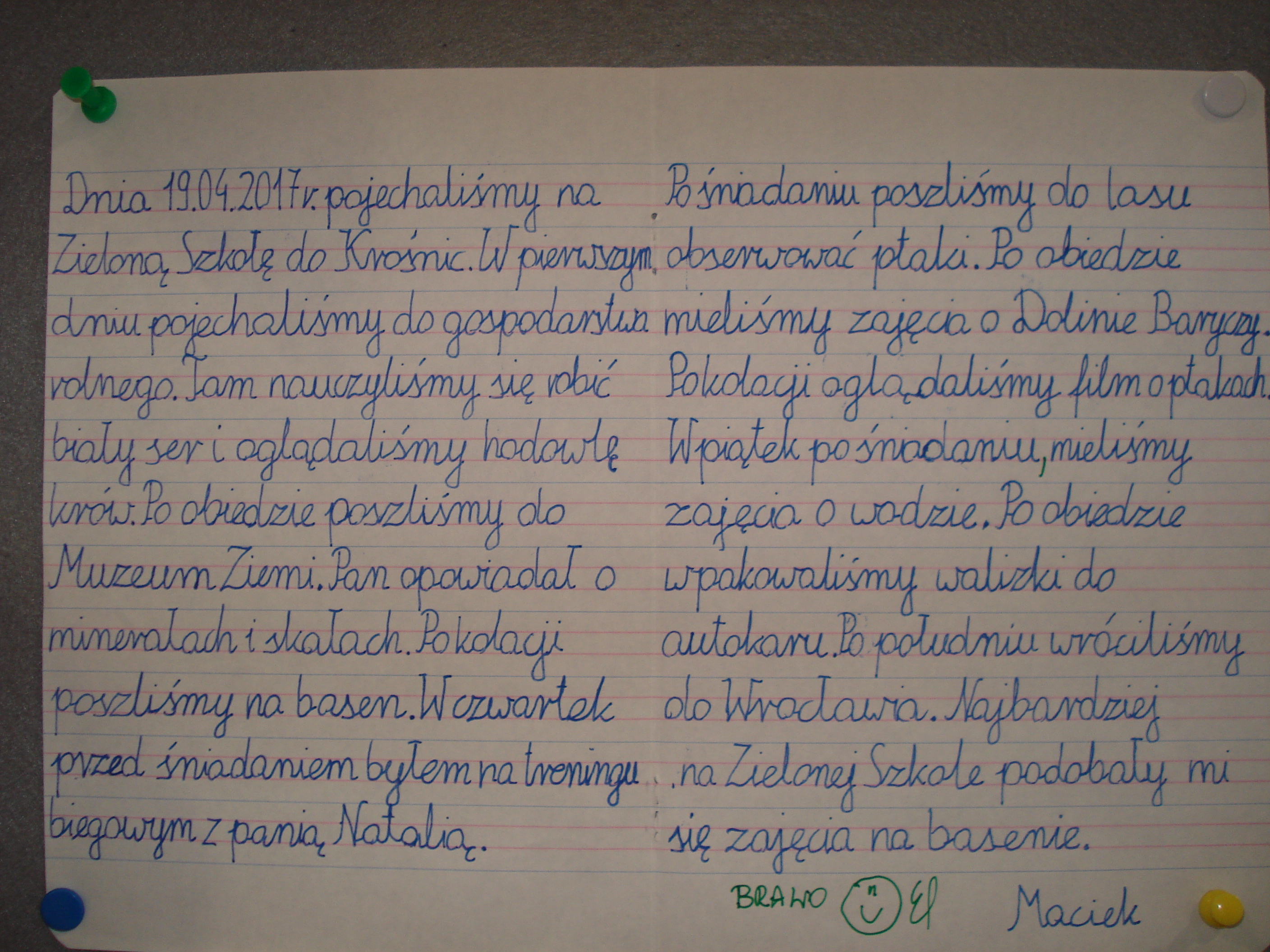 Klasa 2b tak, jak w czasie Białej Szkoły, dzielnie i pilnie pisała dziennik z Zielonej Szkoły. Dzięki temu powstał dokument na miarę Gala Anonima. A działo się, oj działo dużo w kwietniu w Krośnicach... Kto ciekawy niech poczyta, zapraszamy.