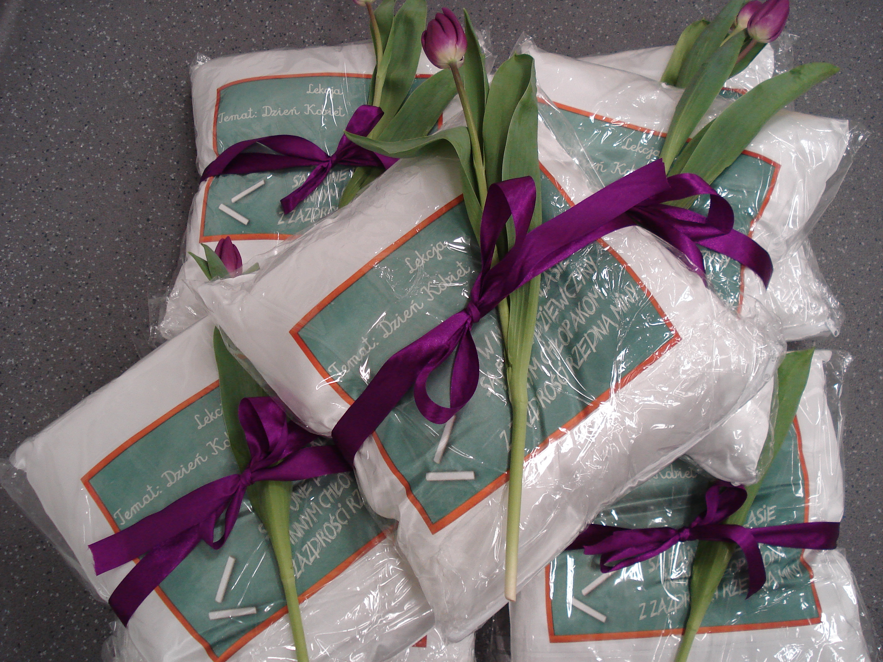 W Dniu Kobiet, chłopcy z klasy 3b, nie zapomnieli o swoich koleżankach. Każda otrzymała wraz z życzeniami, poduszkę z okazjonalnym wierszykiem, tulipana oraz słodycze. Dodatkowo, Feluś i Eryk przynieśli dla koleżanek czekoladki i ptasie mleczko. Mam nadzieję, że poduszki nie posłużą dziewczynom do spania na lekcjach ! :) Pod wpływem emocji związanych z obchodami Dnia Kobiet, klasa wydała kolejną już gazetkę, zatytułowaną "Sekrety Dnia Kobiet". Dużo w niej humoru, ale i prawdy... Poczytajcie.