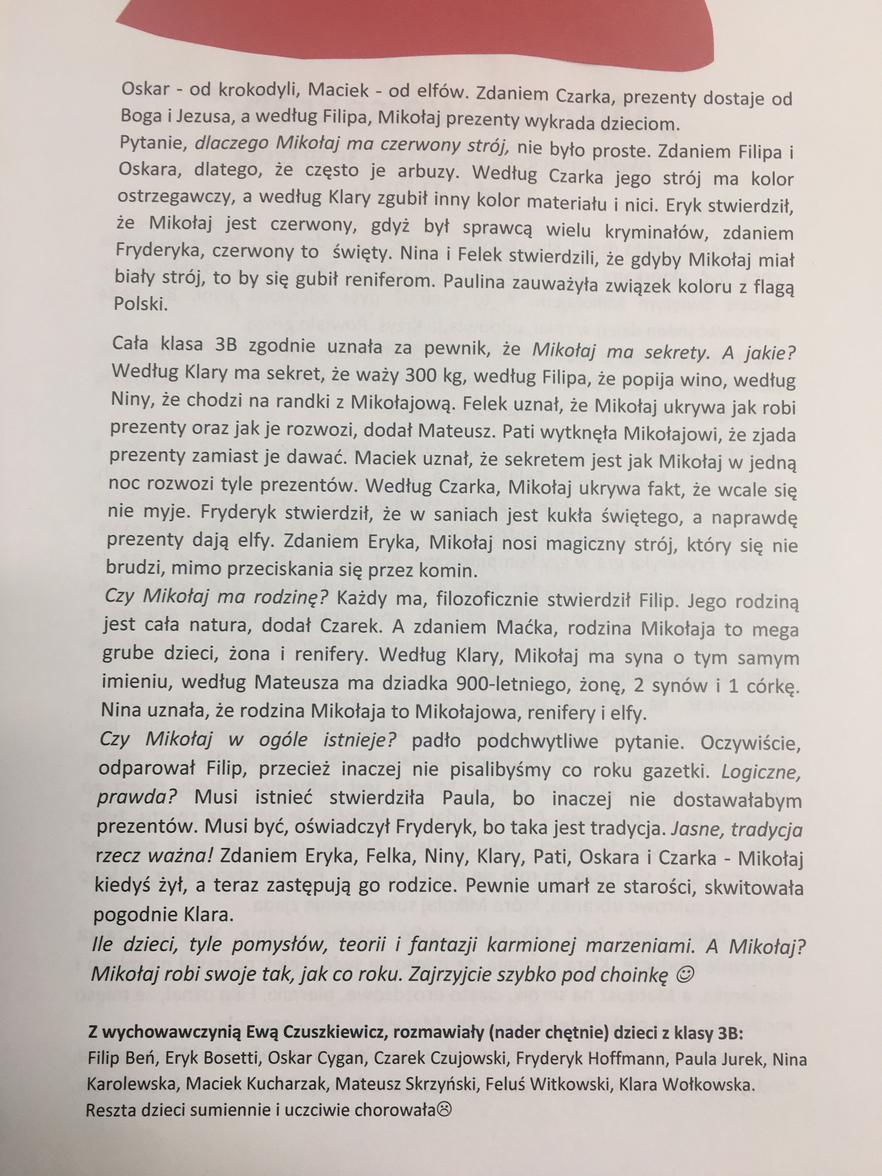 Tradycyjnie klasa 2b zaprasza również do lektury gazetki okolicznościowej pod tytułem "Mikołajowe Sekrety":