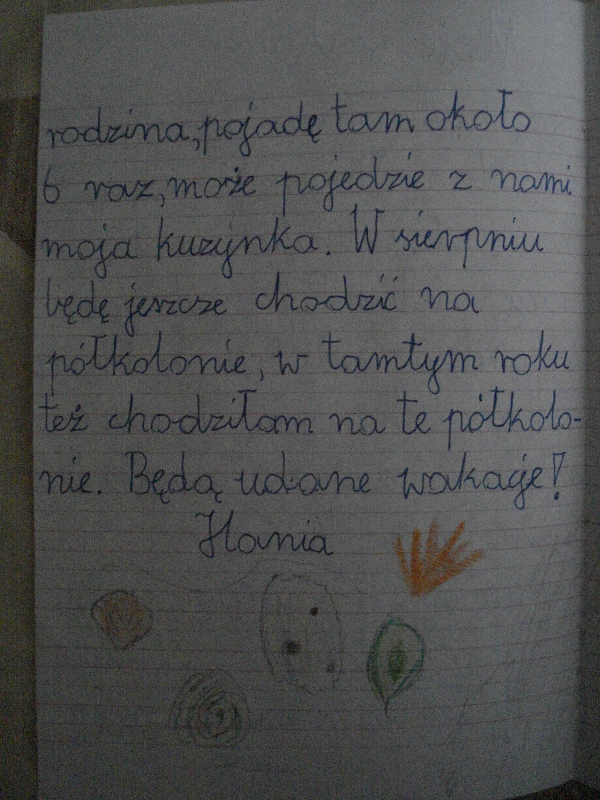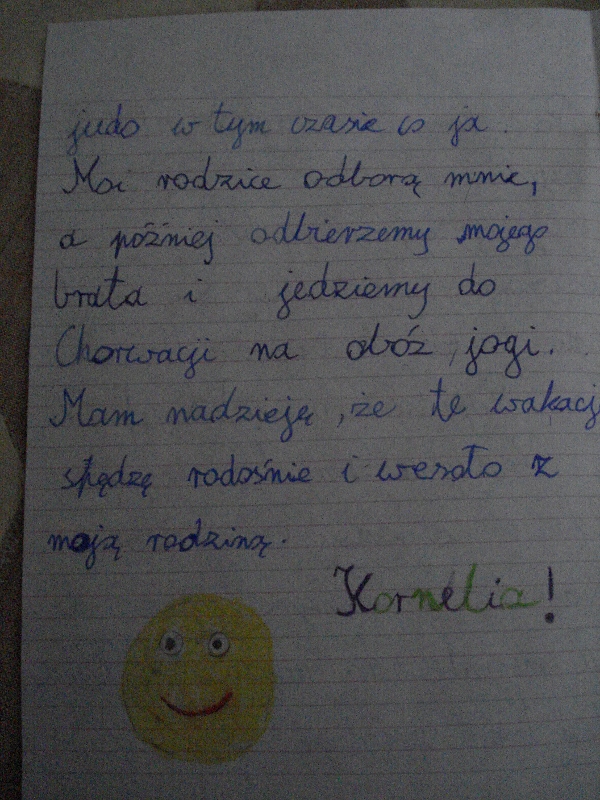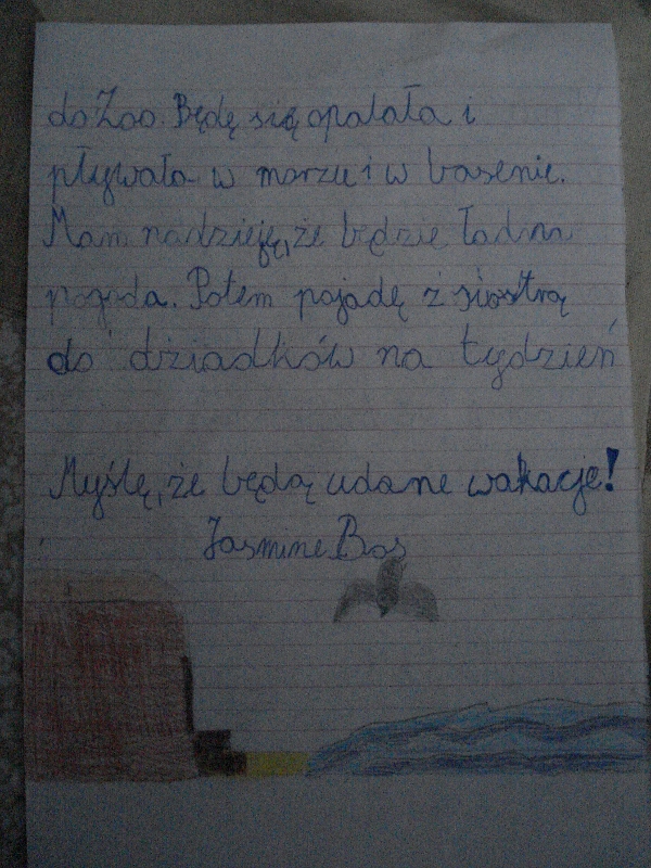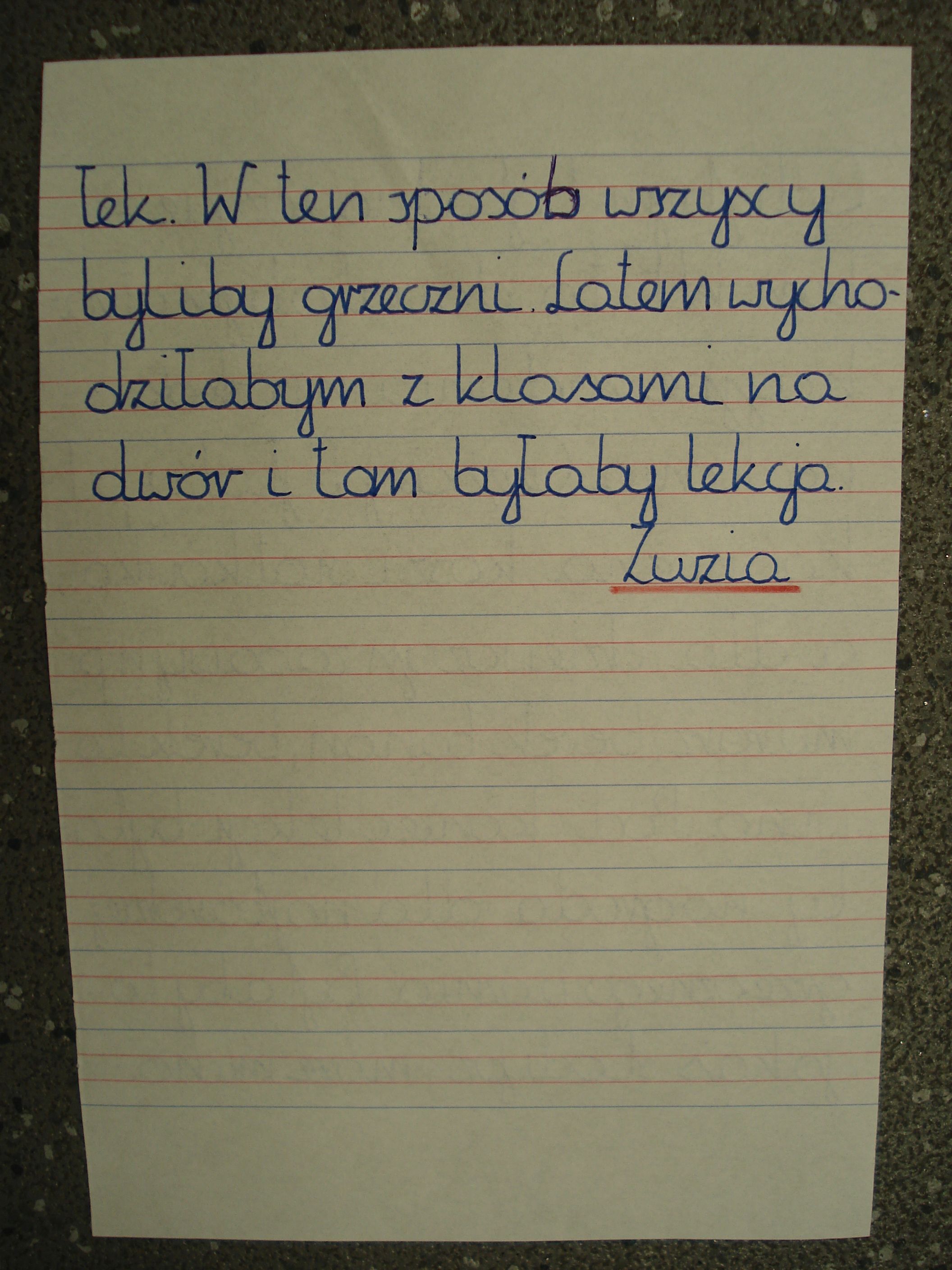 Klasa 1b ochoczo podzieliła się swoimi uwagami: "Na basenie pływaliśmy na plecach i na brzuchu. Pływaliśmy krótko. Było super fajnie. Najlepiej to było juz na końcu bo były takie tam różne zabawy morskie. Pływaliśmy w Strefie Malucha, ale naprawdę to nie było dla maluchów tylko dla nas. Na basenie jest niedobra woda. Nie piłem jej, ale wyglądała mi na niezbyt dobrą. Dlaczego takie baseny są tylko raz w tygodniu? I w dodatku na sam koniec lekcji w szkole?"