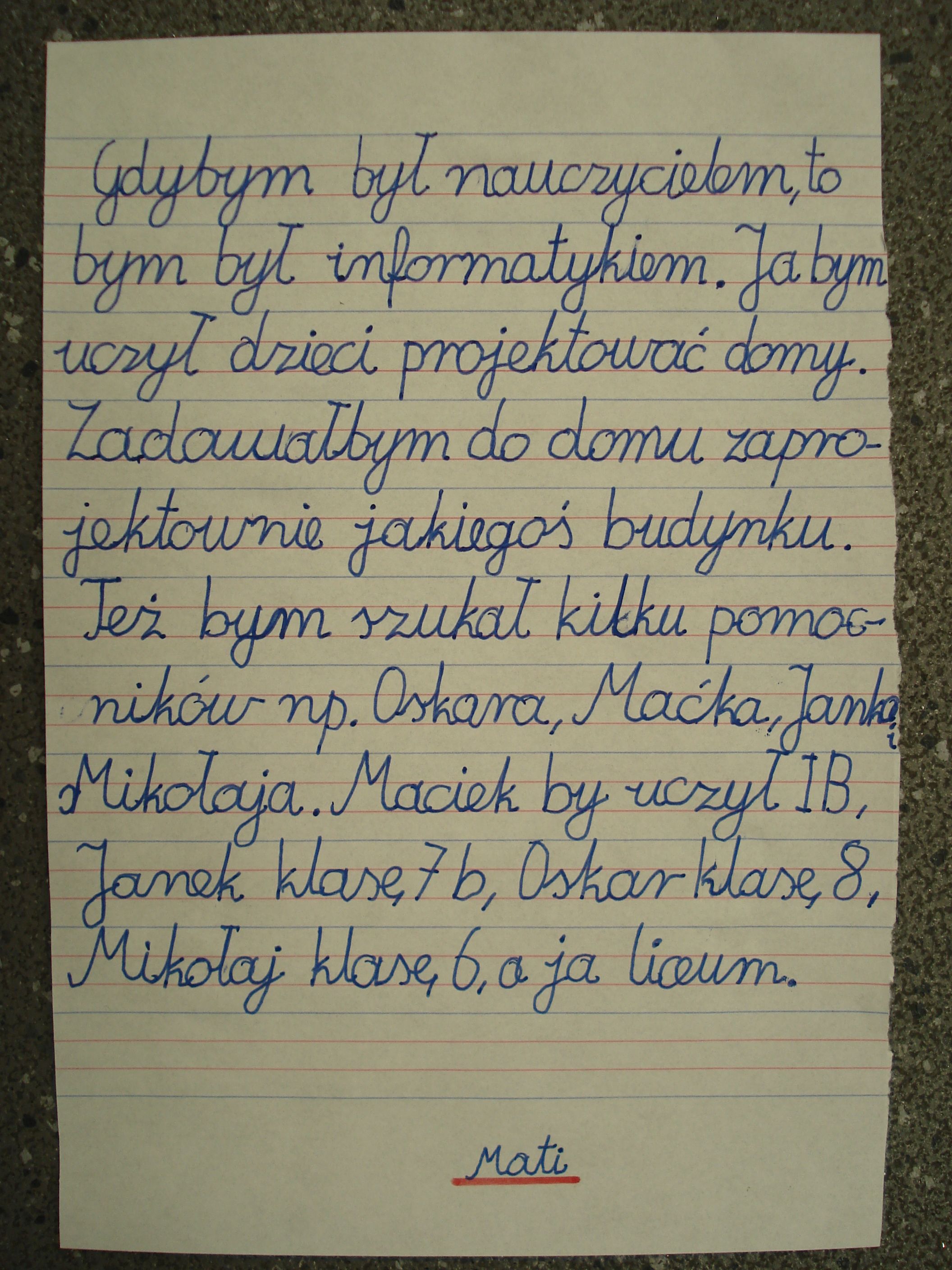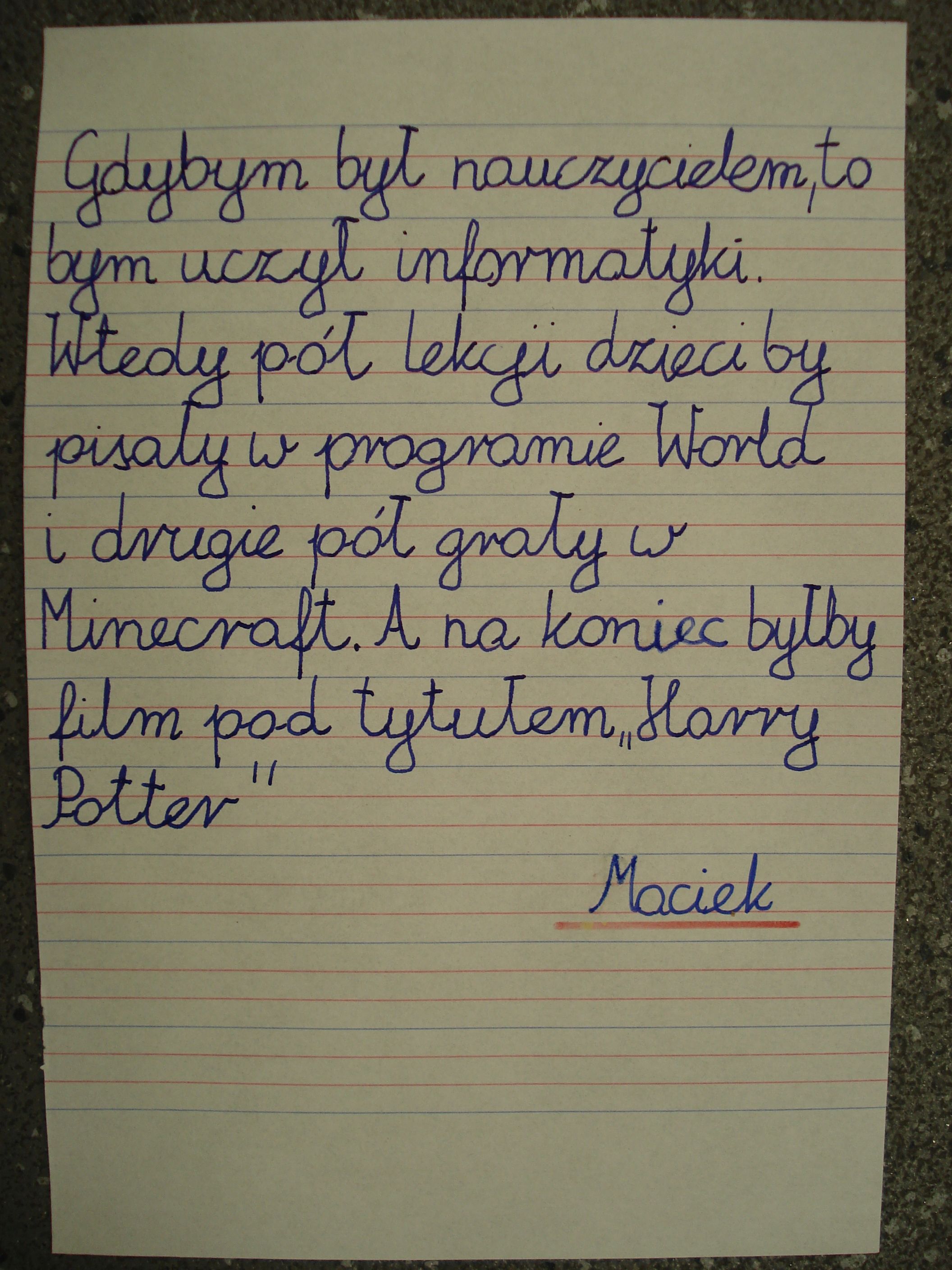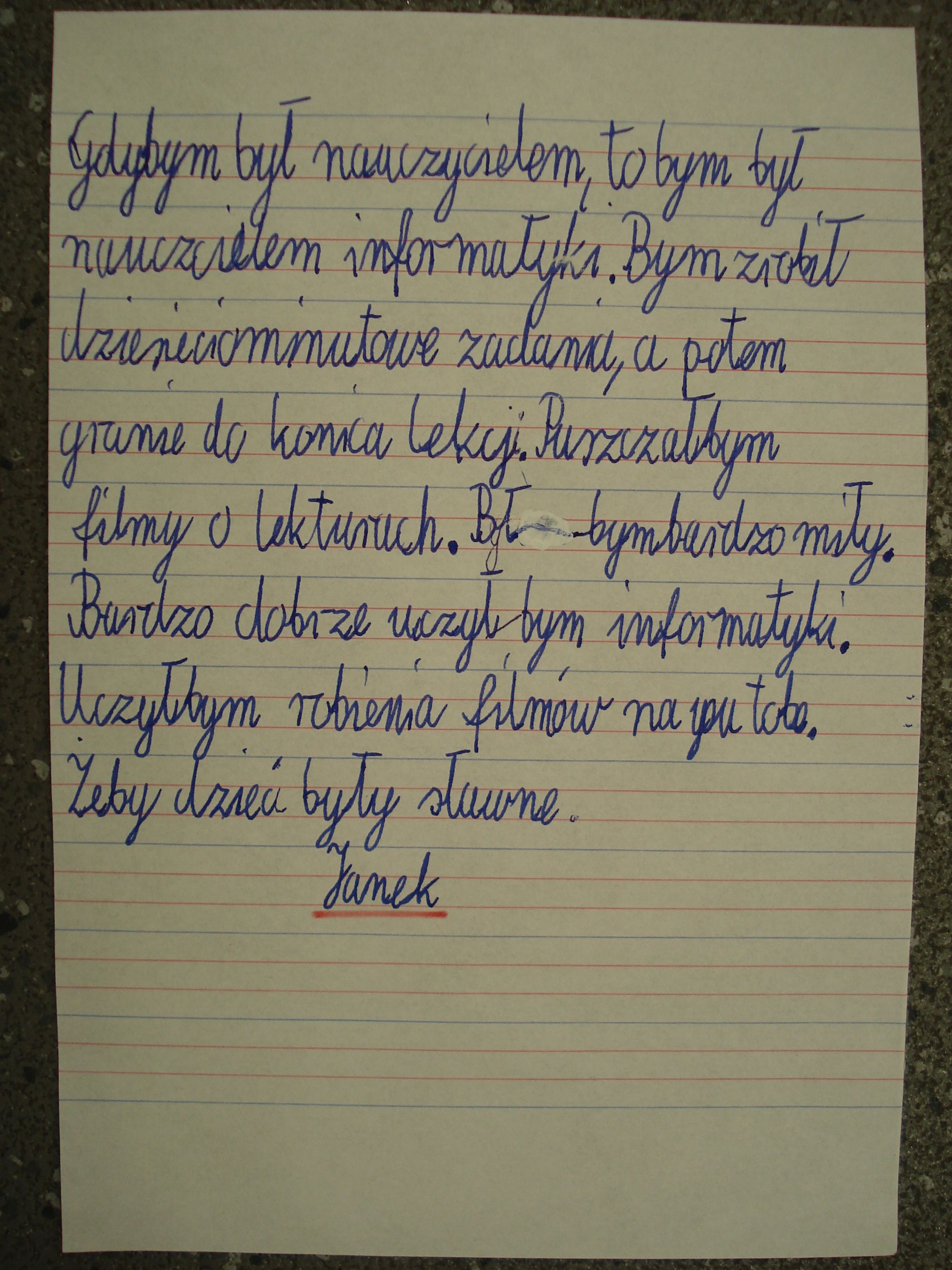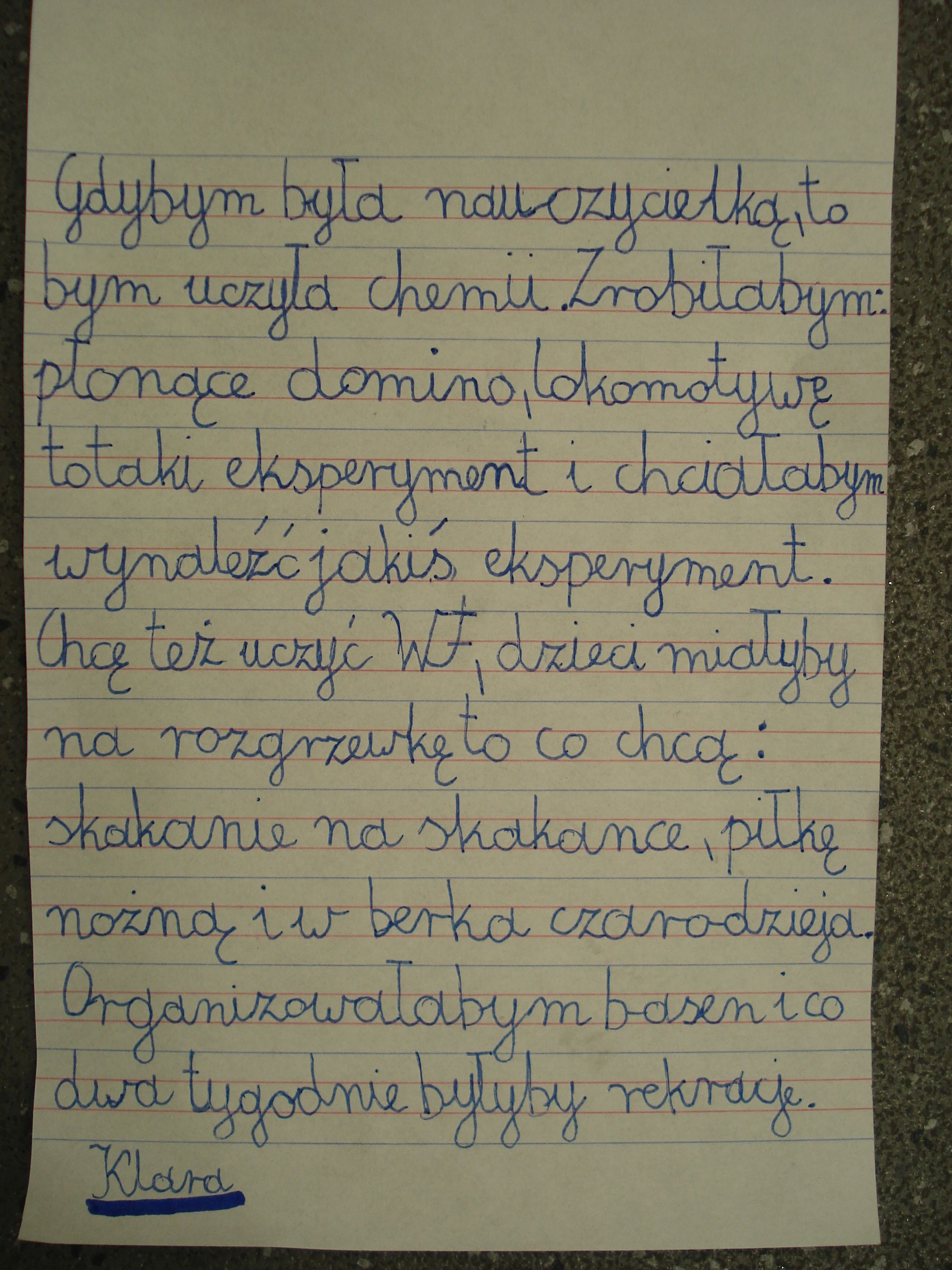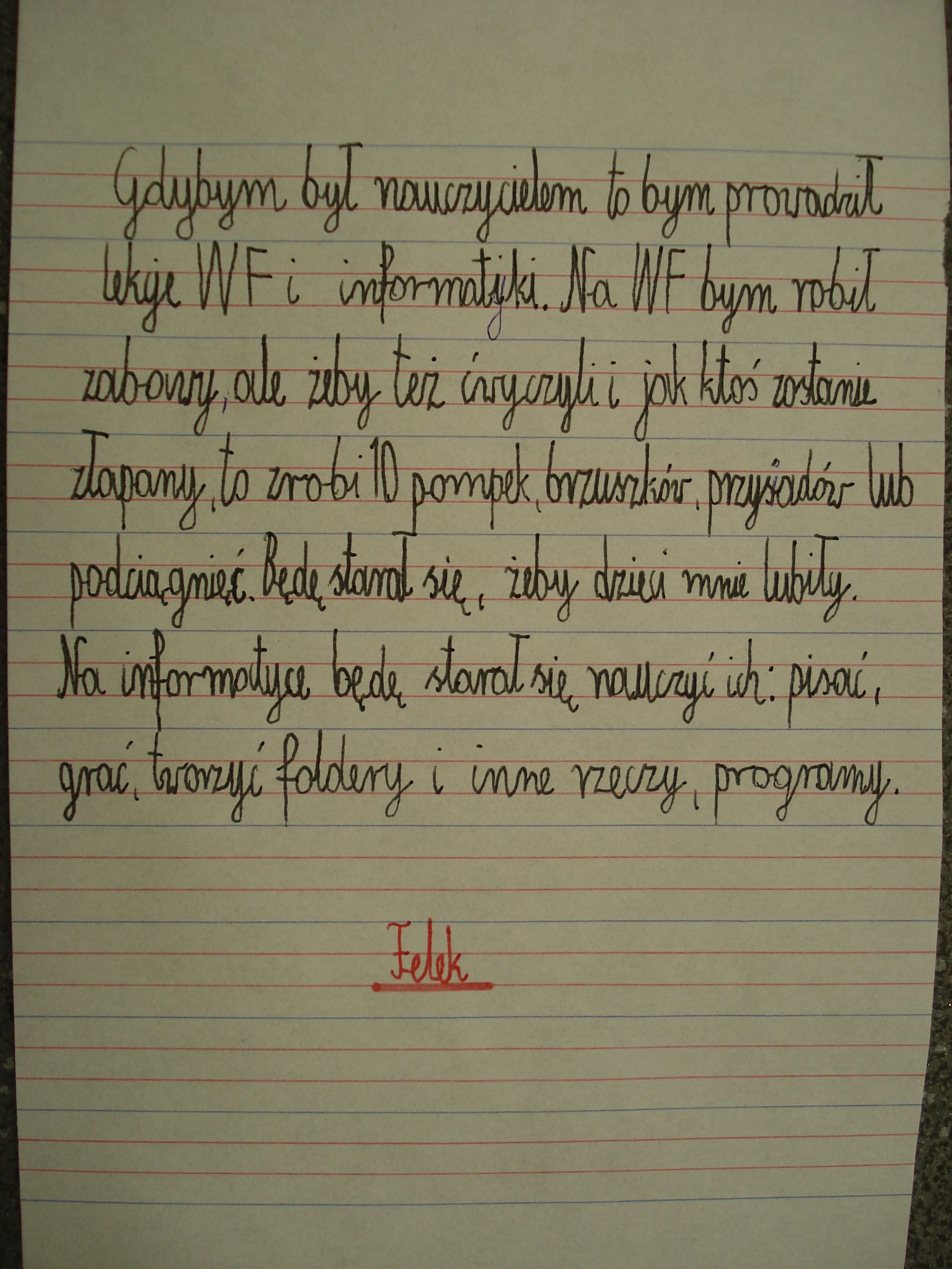 W Dniu Nauczyciela klasa 3b fantazjowała jakby to było, gdyby to oni byli nauczycielami i nauczycielkami. Poczytajcie...