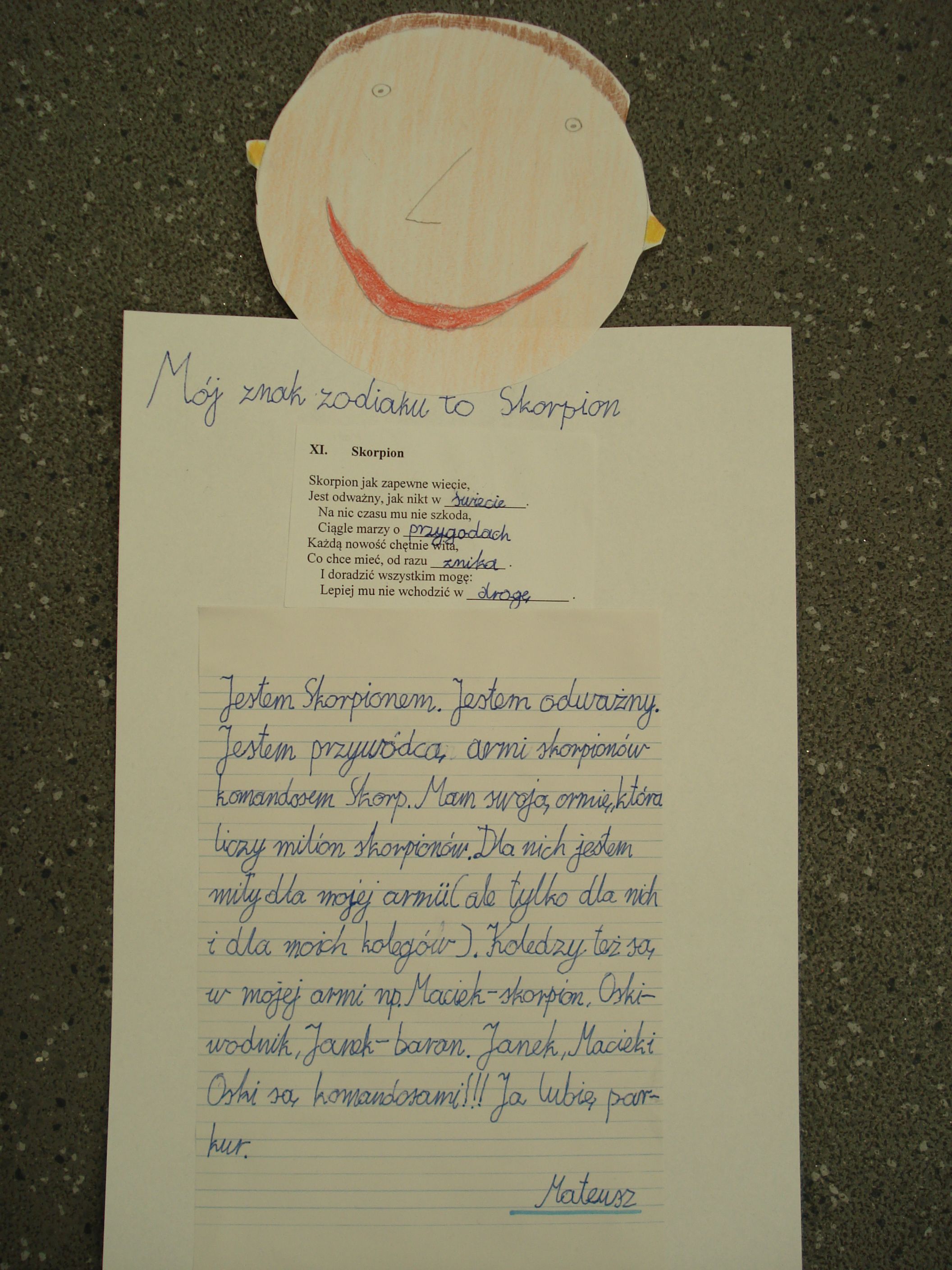 Znaki zodiaku, to rzecz ważna. Także dla dzieci z 3b. U progu Nowego Roku, każdy się zastanawiał, spod jakiego jest znaku zodiaku i jakie ma cechy charakteru. Oj, nie jest łatwo pisać o sobie... Poczytajcie sami.