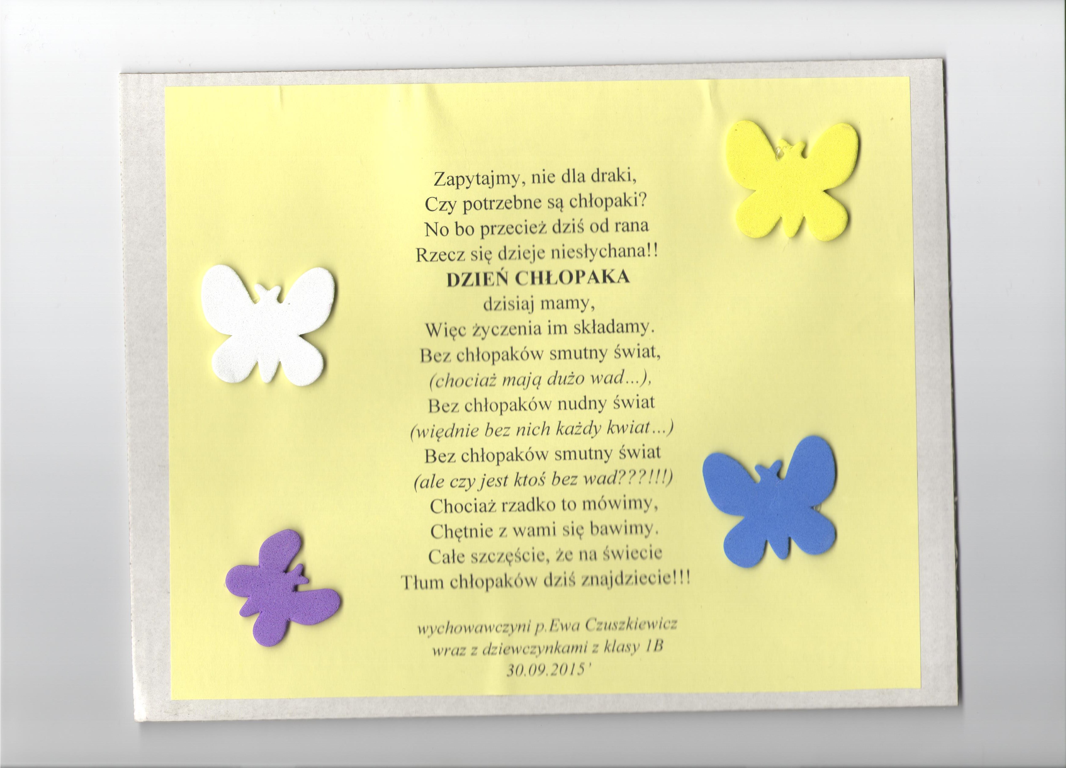 Po pierwsze gazetka okolicznościowa do pobrania tutaj :) A ponadto wiersz na cześć chłopców: