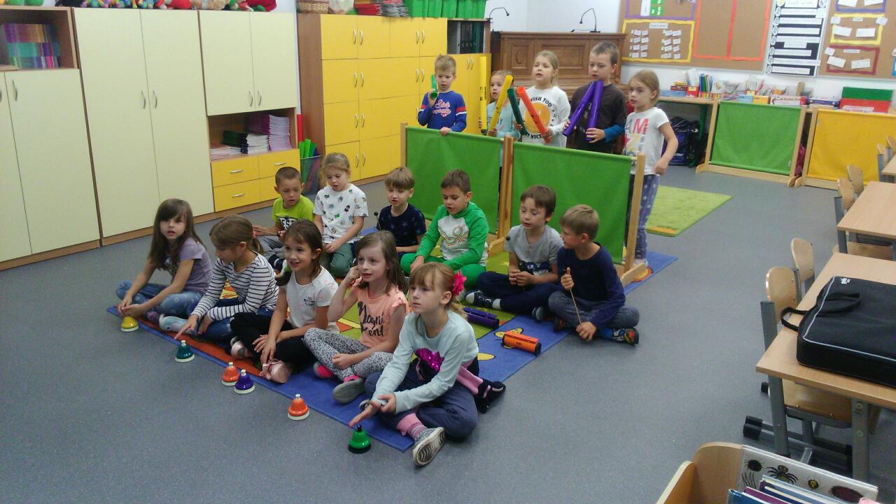 Od początku roku szkolnego, małymi krokami dzieci z klasy 1a wraz z wychowawcą starały się jak najlepiej zorganizować sobie codzienność w klasie. Inspirowani planem daltońskim stawiamy na samodzielność, współpracę, odpowiedzialność i refleksję na temat wspólnych i indywidualnych działań. Poszczególne zakresy naszej pracy widać na zdjęciach. Mamy klasowy regulamin. Każdy w tygodniu pełni jakiś dyżur i jest odpowiedzialny za działalność, której on dotyczy. Mamy obrazkowy plan dnia - dzieci nie pytają co będzie teraz, co za chwilę - mogą to zobaczyć na tablicy. Samodzielnie, bez pytania wychodzą do toalety zostawiając na swoim miejscu serduszko, które czeka na ich powrót. Co tydzień dzieci pracują z inną osobą w parze- losowanie odbywa się zawsze w poniedziałek rano. W wyniku losowania zajmują też co tydzień inne miejsce w ławkach i tak pracują w grupie. Dni tygodnia odliczają na kolorowych dzwonkach, na których też coraz lepiej grają w zespole klasowym akompaniując do piosenek. Potrafią świętować, co pokazały w Dniu Chłopaka. Wspólnie pracują np. tworząc przestrzenne konstrukcje, do których zamiast klocków wykorzystały namoczony groch i wykałaczki.