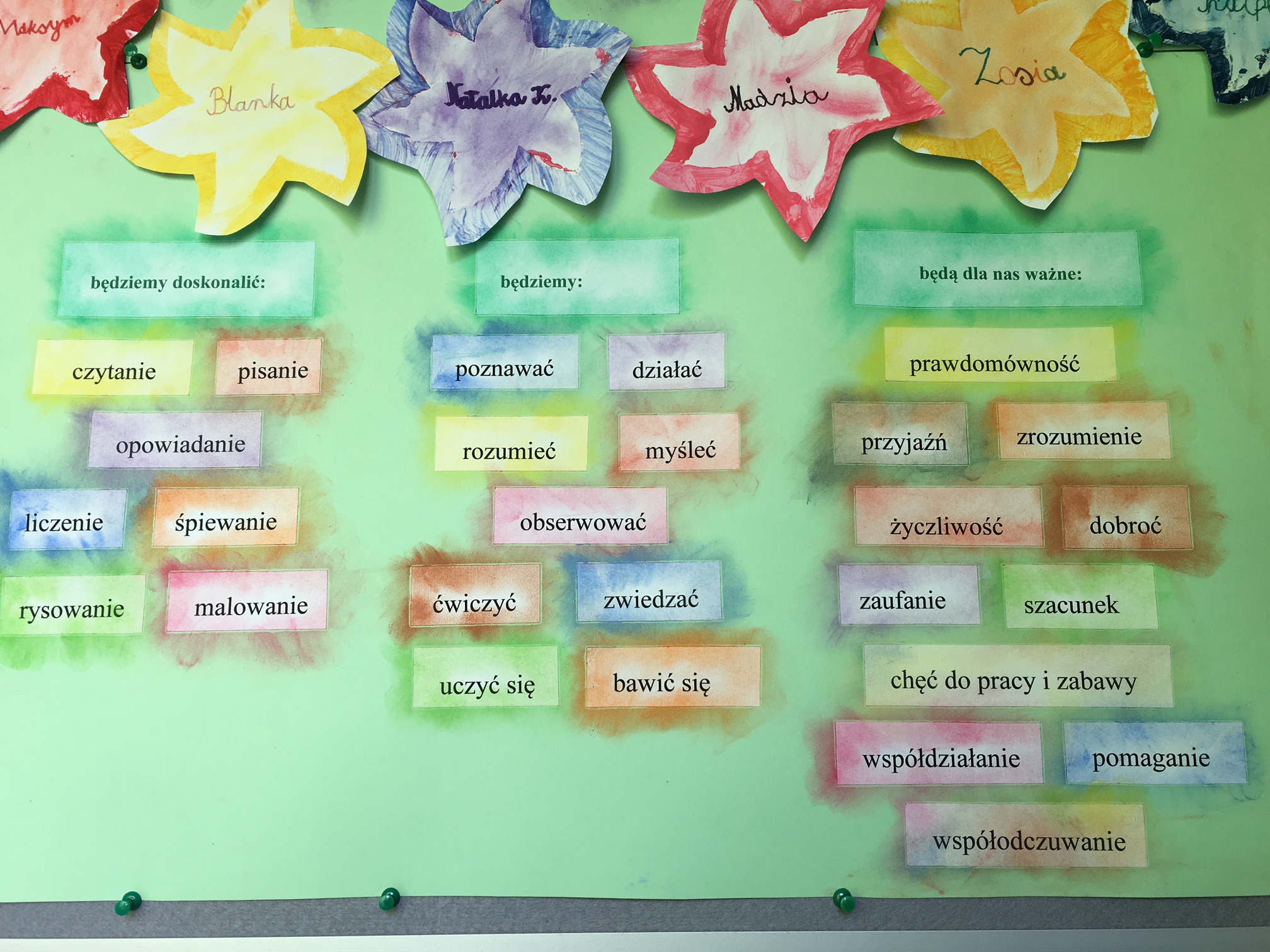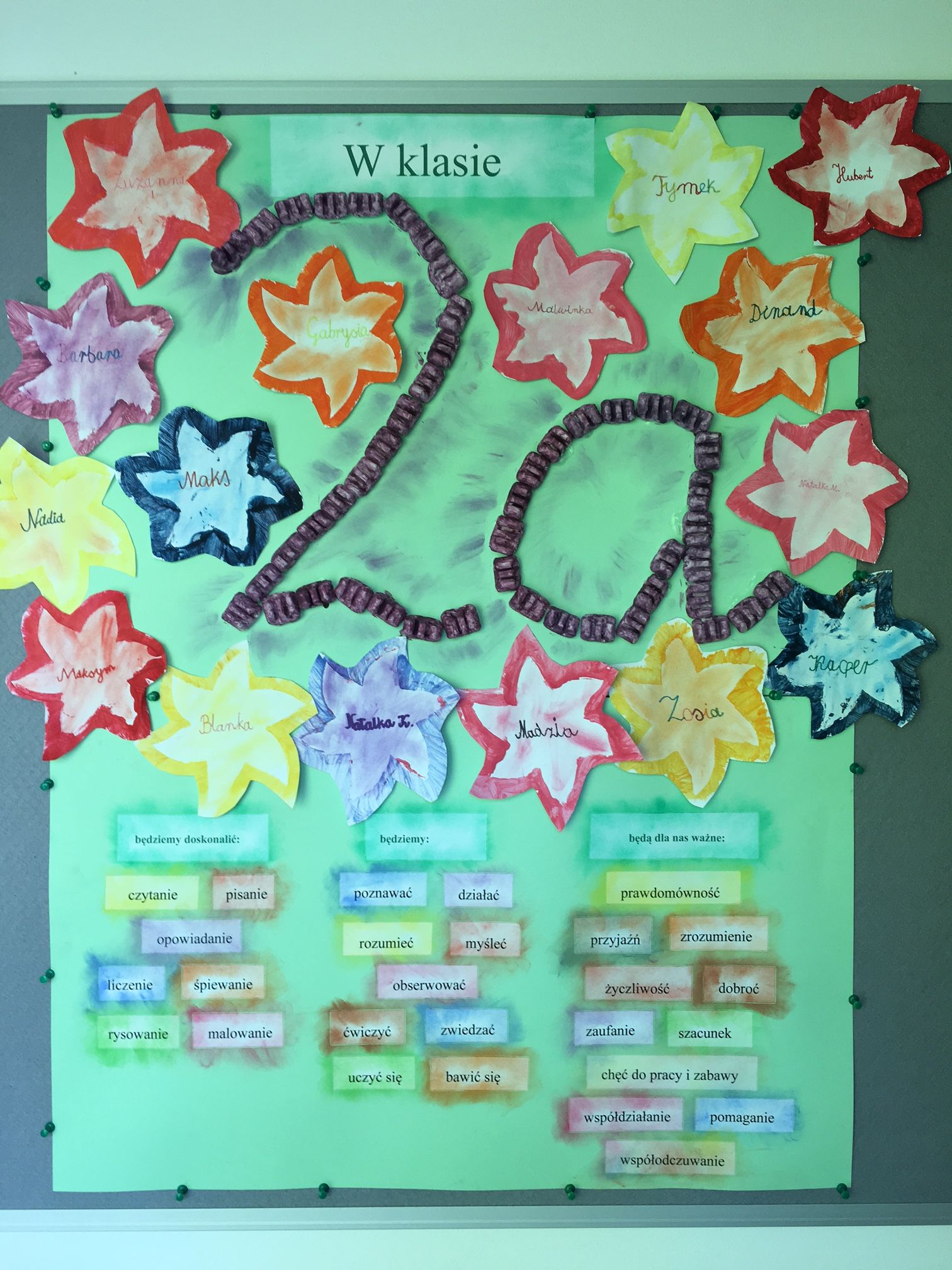 Po wakacjach klasa 3a ostro wzięła się do pracy. Ustaliliśmy kilka nowych zasad dotyczących pracy w parach i w grupach. Od teraz dzieci mają szansę pracować ze sobą w myśl zasady: każdy z każdym. Dzieci przejęły w swoje ręce różne aktywności wpływające na funkcjonowanie klasy i są za nie odpowiedzialne. Powstała poczta klasowa w celu lepszej komunikacji w sprawach klasowych i informowania o swoich emocjach, jeśli rozmowy nie są wystarczające. Dzieci stworzyły klasową bibliotekę wraz z regulaminem. Zgromadziły dość duży zbiór książek i teraz wypożyczają je i czytają. Same nawet tworzą do niej swoje autorskie książki. Uporządkowaliśmy też naszą ekoskrzynię. W najbliższym czasie pojawią się tam rośliny. Aktywnie i z radością współpracujemy ze sobą, ucząc się jak najlepiej wykorzystywać swoje zdolności i pomagać sobie nawzajem. GALERIA