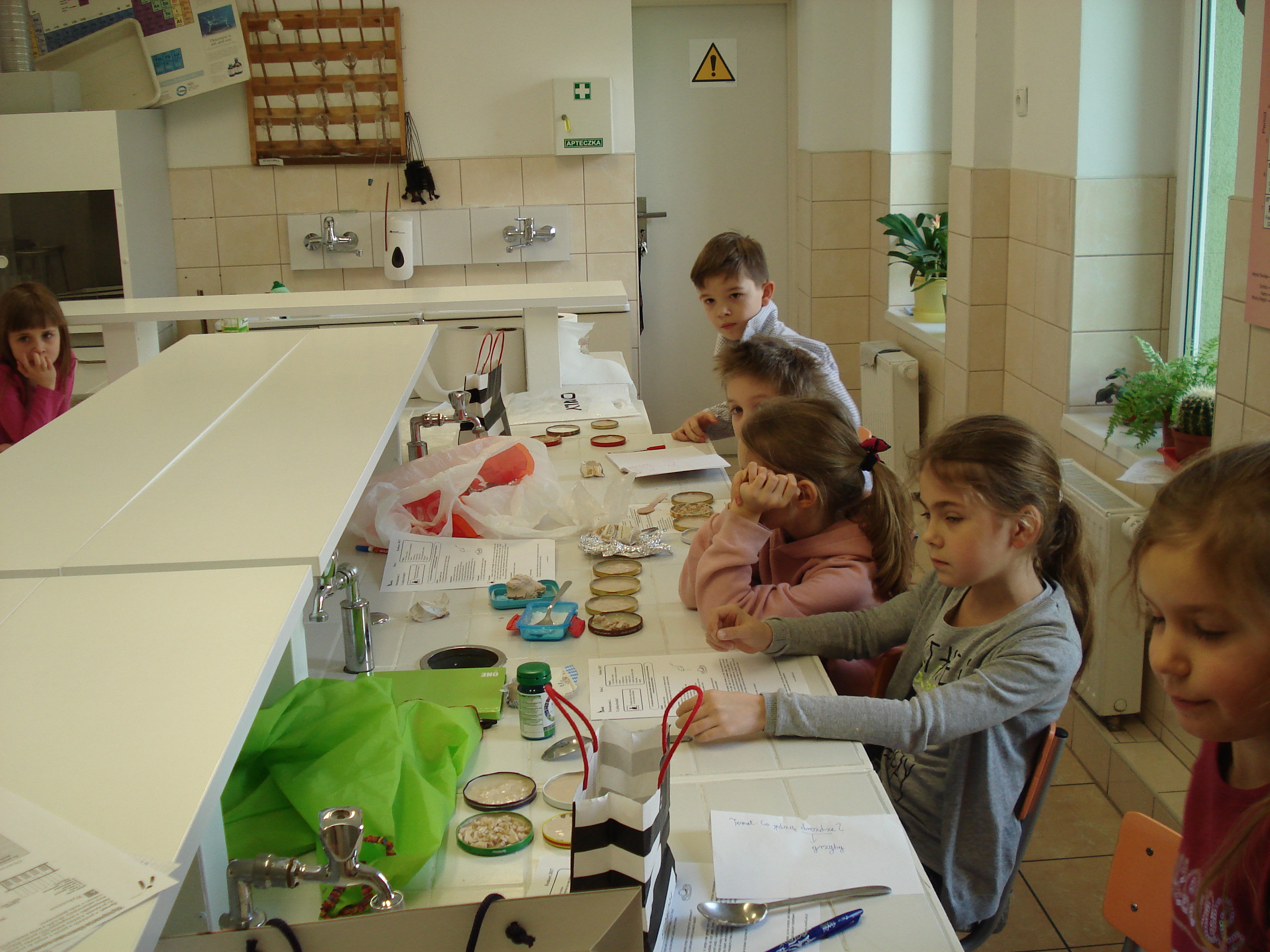 Uczniowie klasy 2b w czasie zajęć koła przyrodniczego uczyli się ostatnio o drożdżach - czym są, czym się odżywiają i do czego się je wykorzystuje - oraz przeprowadzali na nich doświadczenia. A oto jak wyglądały zajęcia: