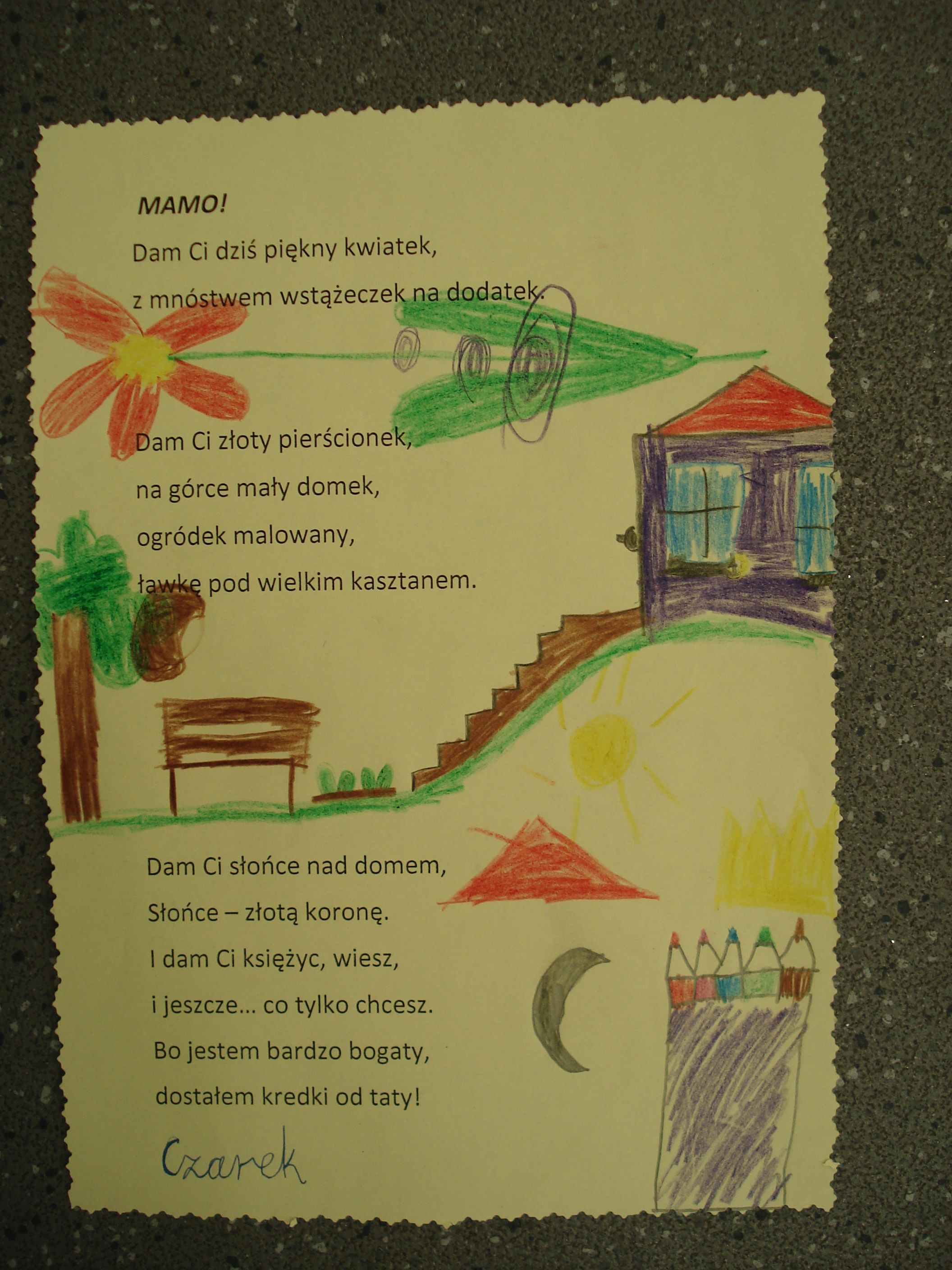 Ten dzień był oczywiście wolny od zajęć, ale kilka dni wcześniej dzieci przygotowywały się i wystąpiły na szkolnym koncercie śpiewając piosenki. W klasie pracowały wspólnie nad wykonaniem godła i flagi. Obejrzały też film i poznały legendę związaną z powstaniem państwa polskiego oraz utrwaliły sobie znajomość symboli narodowych.