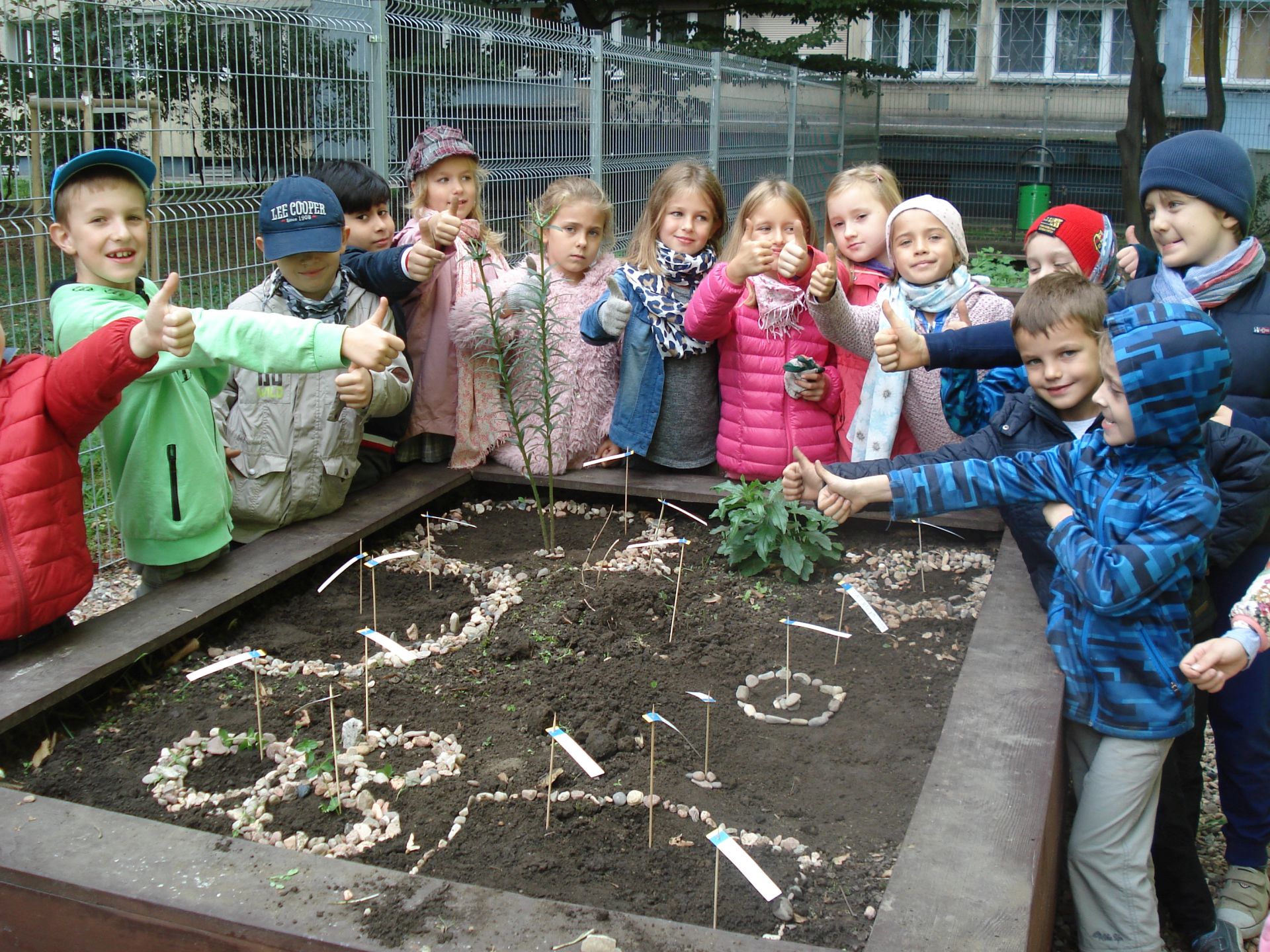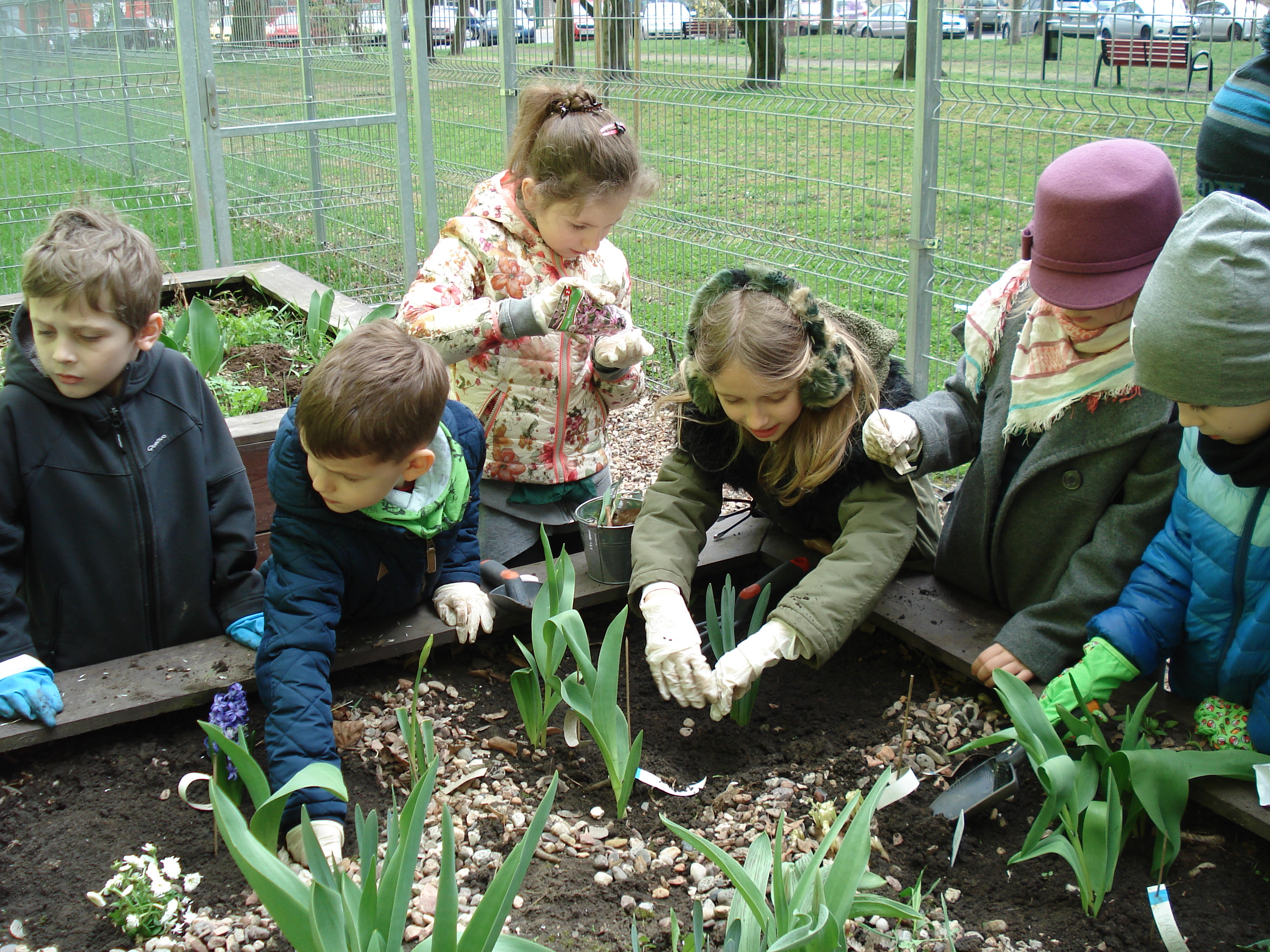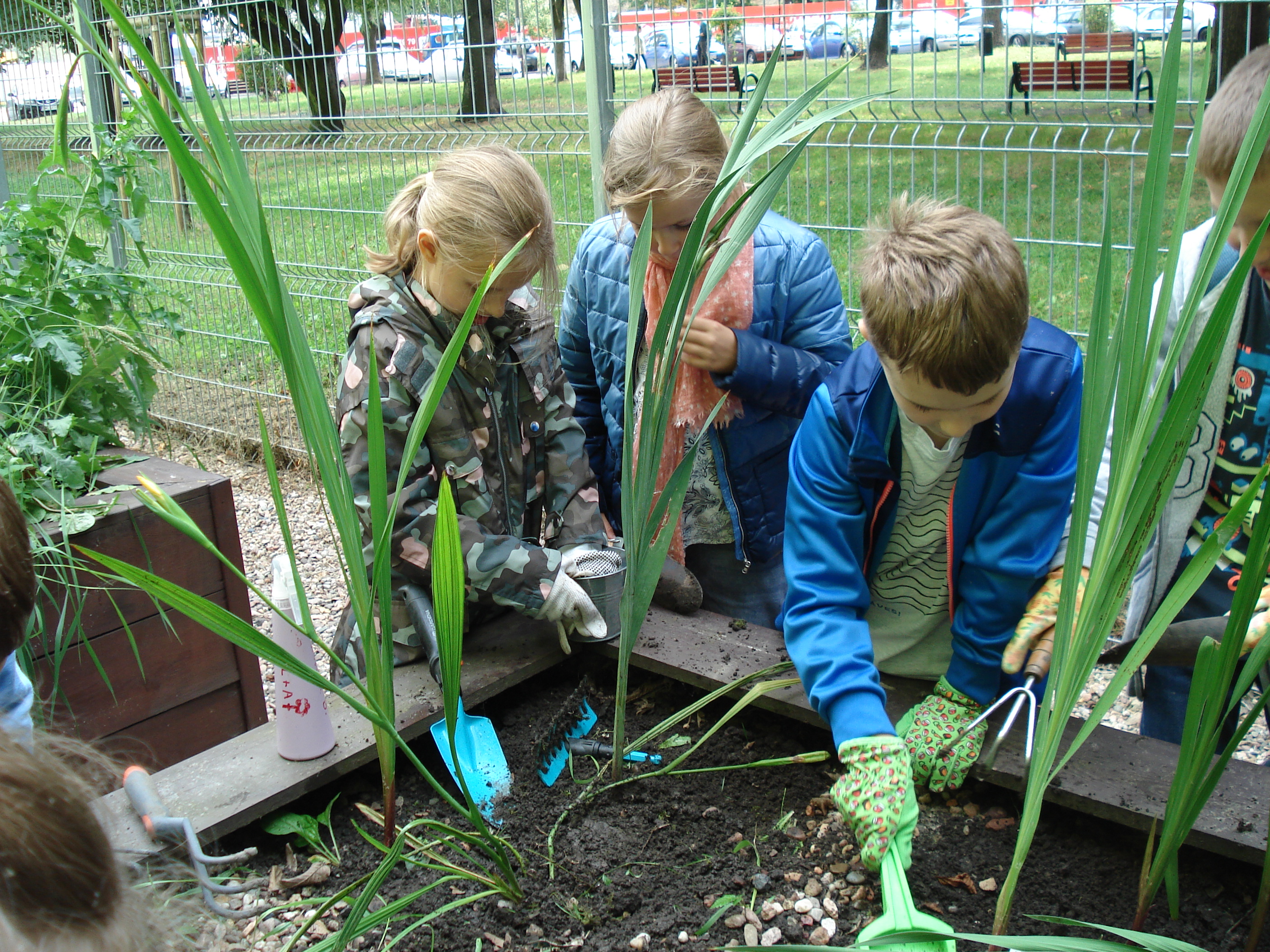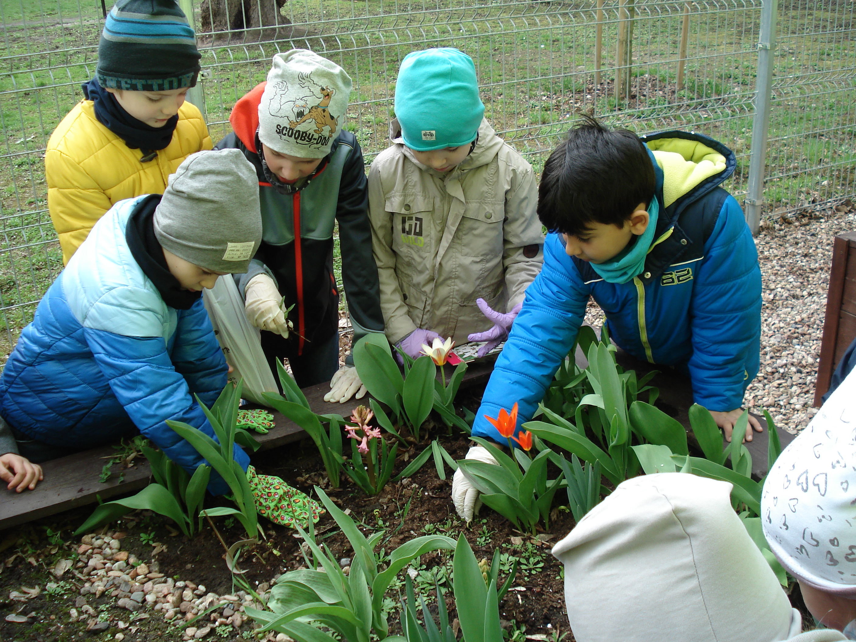 Wraz z pierwszymi promieniami słońca, klasa 2b pod opieką wychowawczyni Ewy Czuszkiewicz raźno ruszyła do pracy w szkolnym ogródku. W klasowej EKO-SKRZYNI zima nie wyrządziła większych szkód. Dzieci zaopatrzone w grabki i łopatki odchwaściły skrzynię. Wielki zachwyt wzbudziły dłuuugaśne wąsy perzu wykopywane spomiędzy roślin. Potem dzieci posadziły i posiały przyniesione roślinki i nasiona. Czego tam nie było! I maciejka i bratki, niezapominajki, stokrotki, narcyzy i mnóstwo innych. Ledwie zmieściły się w klasowej EKO-SKRZYNI. Teraz codziennie zafascynowane dzieci sprawdzają co wyrosło. Uczą się cierpliwości...