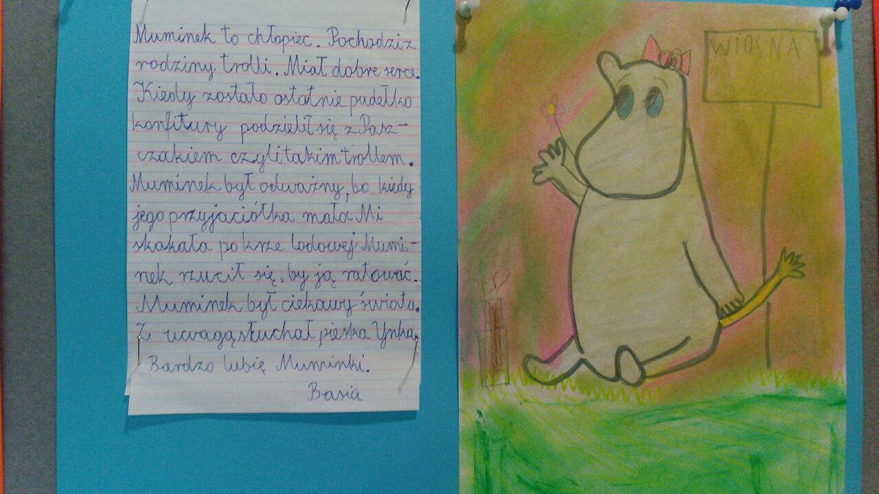 Podczas zimy dzieci z klasy 2a czytały książki o Muminkach. Zima się skończyła, a miłość do Muminków nie gaśnie. Dzieci polubiły wszystkie postacie, ale szczególnie wczuły się w los Buki, która nie mogąc przezwyciężyć własnej natury była bardzo samotna. Dzieci pożegnały zimę z Muminkami i z nimi przywitały wiosnę. Wykonały wiele prac plastycznych, aby uzewnętrznić swoje przywiązanie i muminkową przyjaźń. Ostatnio mogły również przytulać Muminki dzięki pluszakom, które pojawiły się w klasie.