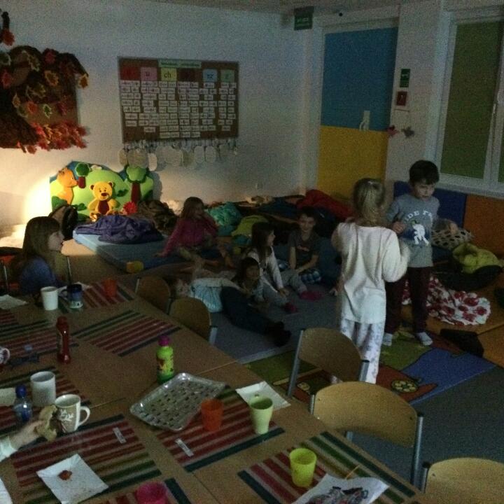 18 listopada klasa 2a miała wiele nocnych atrakcji. Najpierw oglądaliśmy Wrocław nocą z punktu widokowego SkyTower, a później w szkole spotkaliśmy się na pierwszej naszej "Nocowance". Nasza sala zamieniła się w sypialnię. Jak w rodzinie - mówiły dzieci: wspólna kolacja i śniadanie, zabawy i tańce do późna, spacer po szkole z latarkami. Oglądaliśmy też film "Mój przyjaciel lis", związany z projektem "Rok w lesie". Ważne słowa z filmu: "kochać to nie znaczy posiadać" oraz inne związane z przyjaźnią pozostaną w naszej pamięci, a cała nocna przygoda jest na pewno cennym doświadczeniem i kolejnym krokiem w budowaniu pozytywnych relacji klasowych.