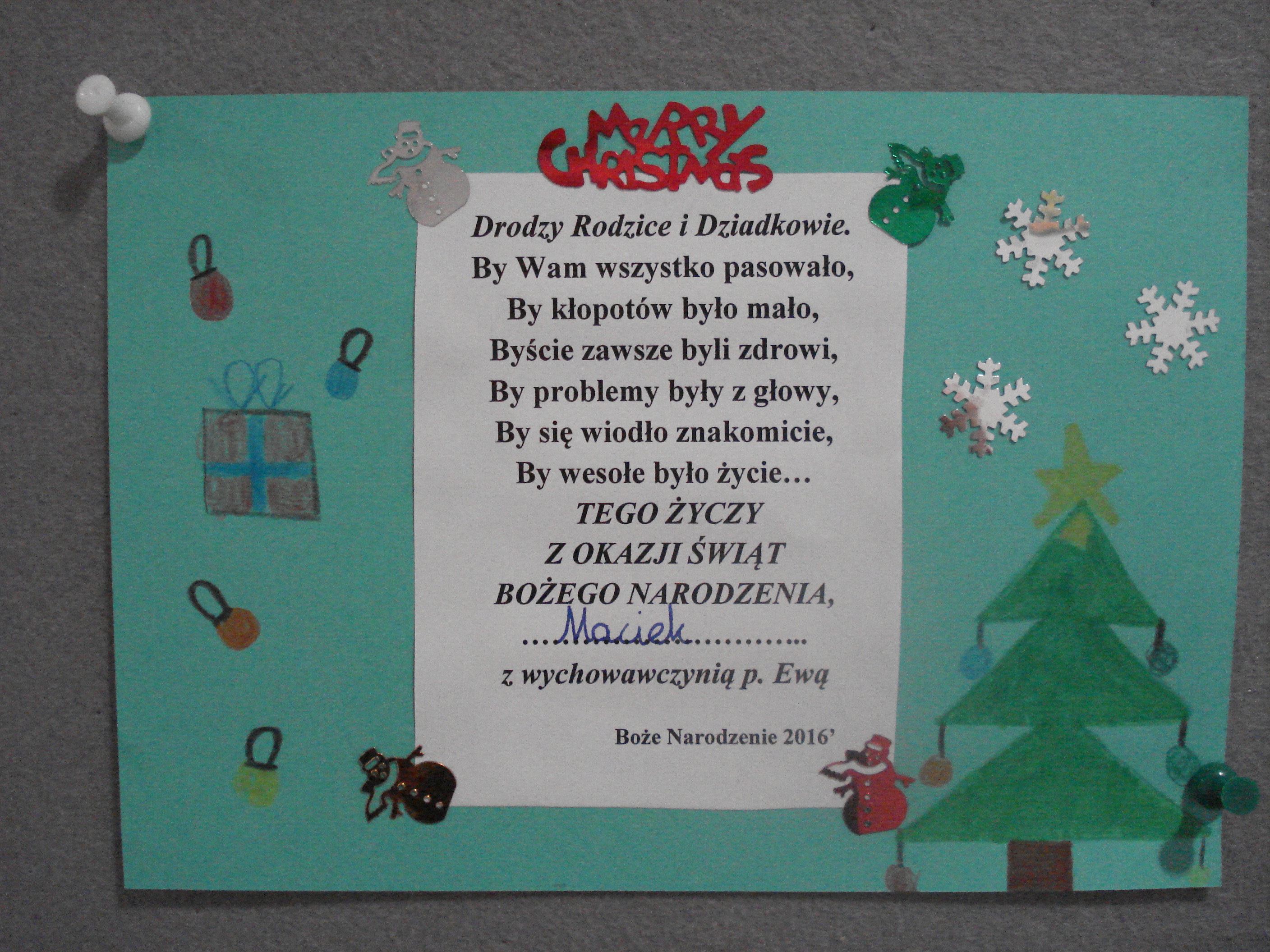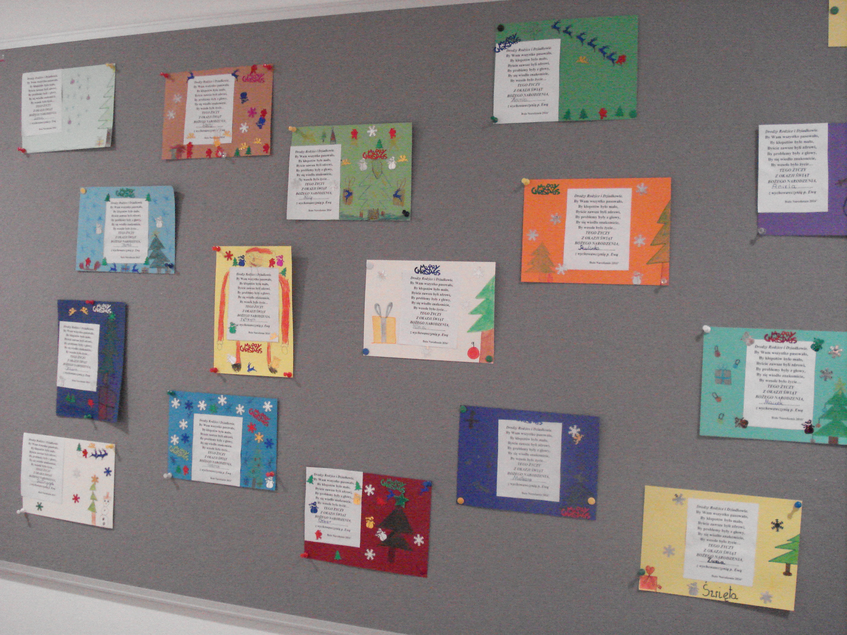 Święta Bożego Narodzenia za pasem, dzieci z klasy 2b składają więc rodzicom życzenia. Na razie tylko na papierze, ale jakże pięknie wykonane!