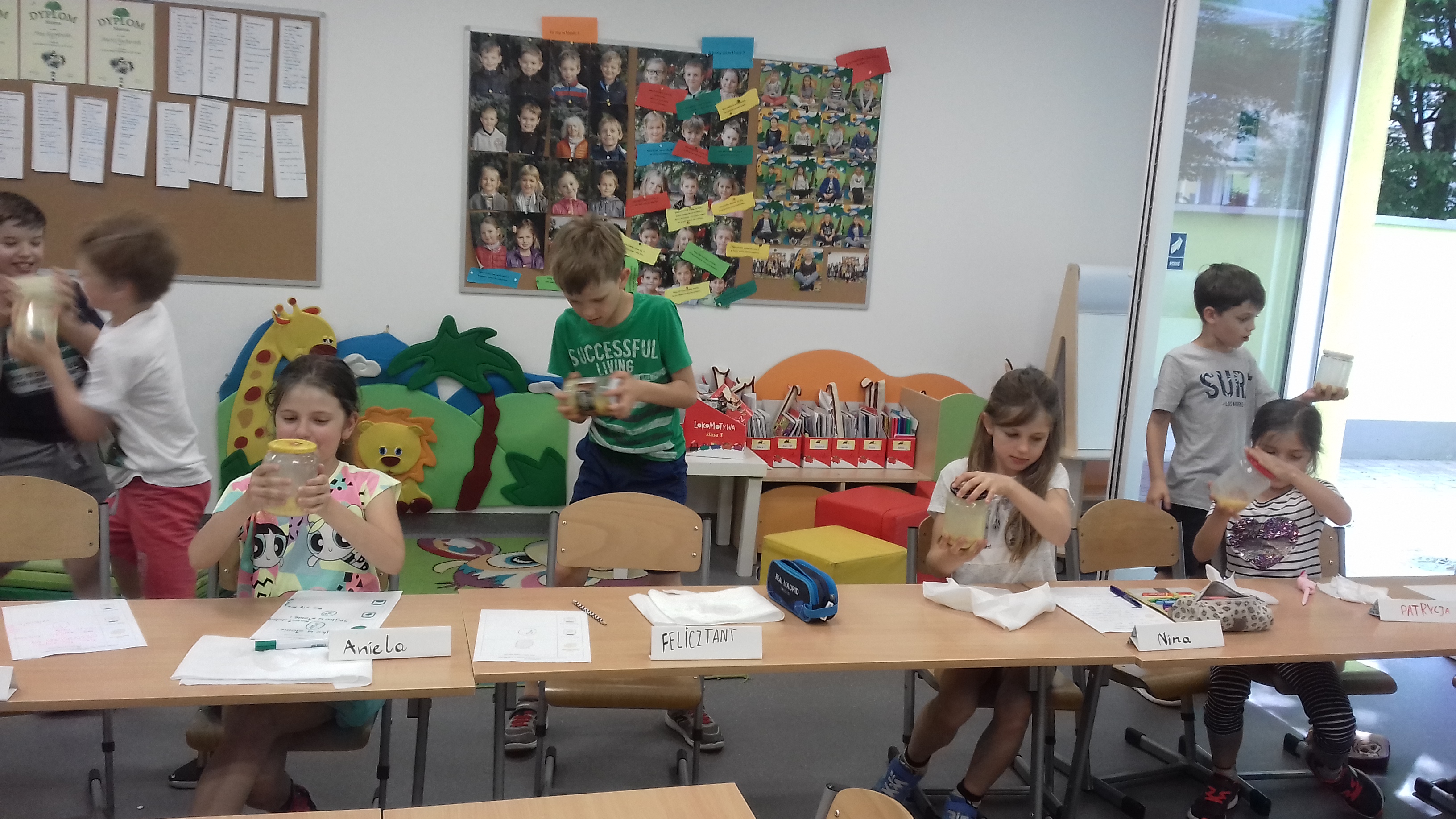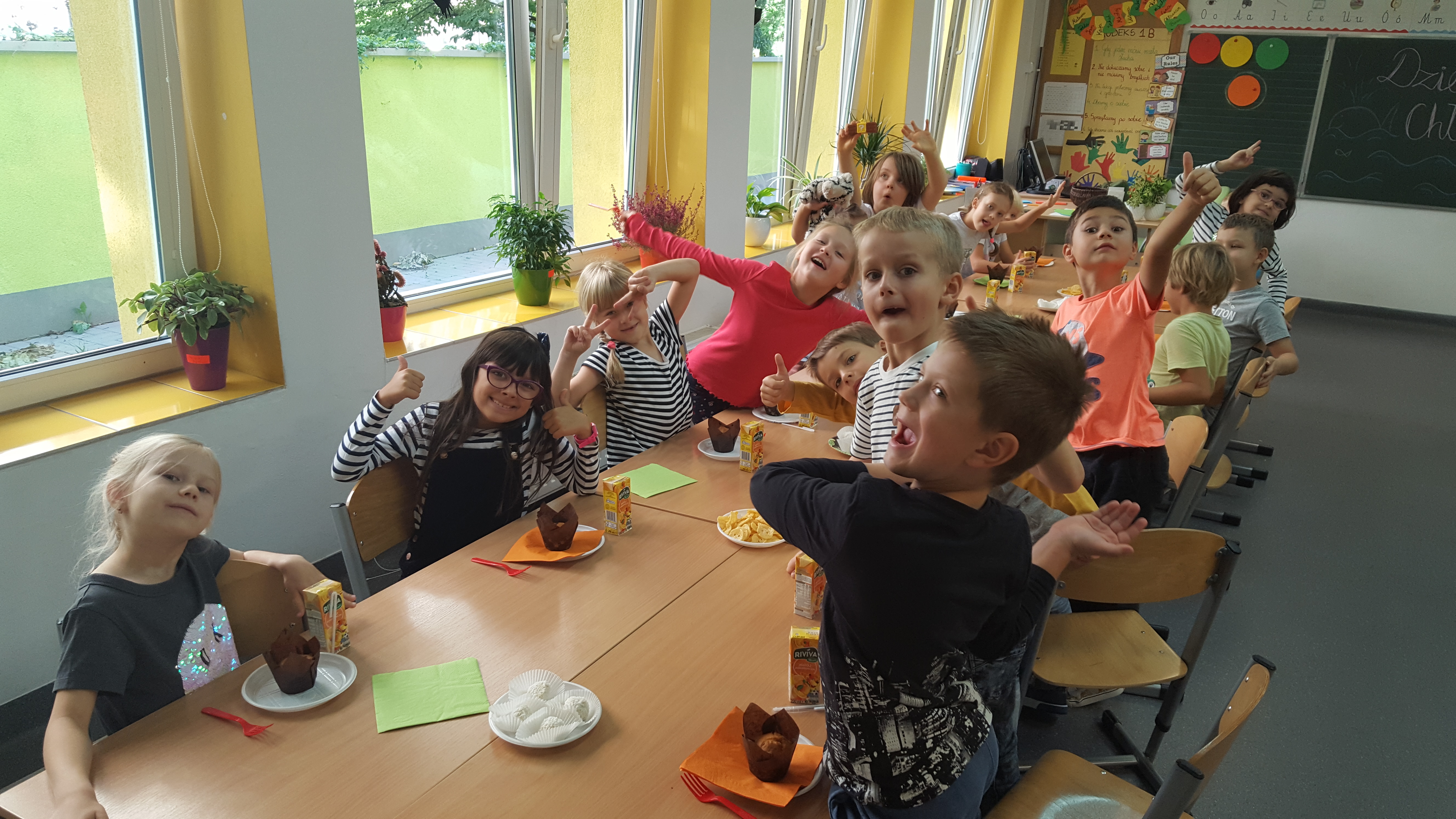 Po raz pierwszy uczniowie klasy 1a przygotowali samodzielnie swoje własne śniadanie. Wyposażeni w potrzebne sprzęty fartuszek, deseczki, noże, wyciskarki oraz odpowiednią ilość zdrowych produktów byli gotowi, aby podjąć się tego niełatwego zadania. Uczniowie z wielką radością i zaangażowaniem realizowali postawione przed nimi wyzwanie. Wszystko było pyszne, zdrowe, nic się nie zmarnowało. Podsumowaniem niech będą słowa uczniów: " To było najlepsze śniadanie w moim życiu".