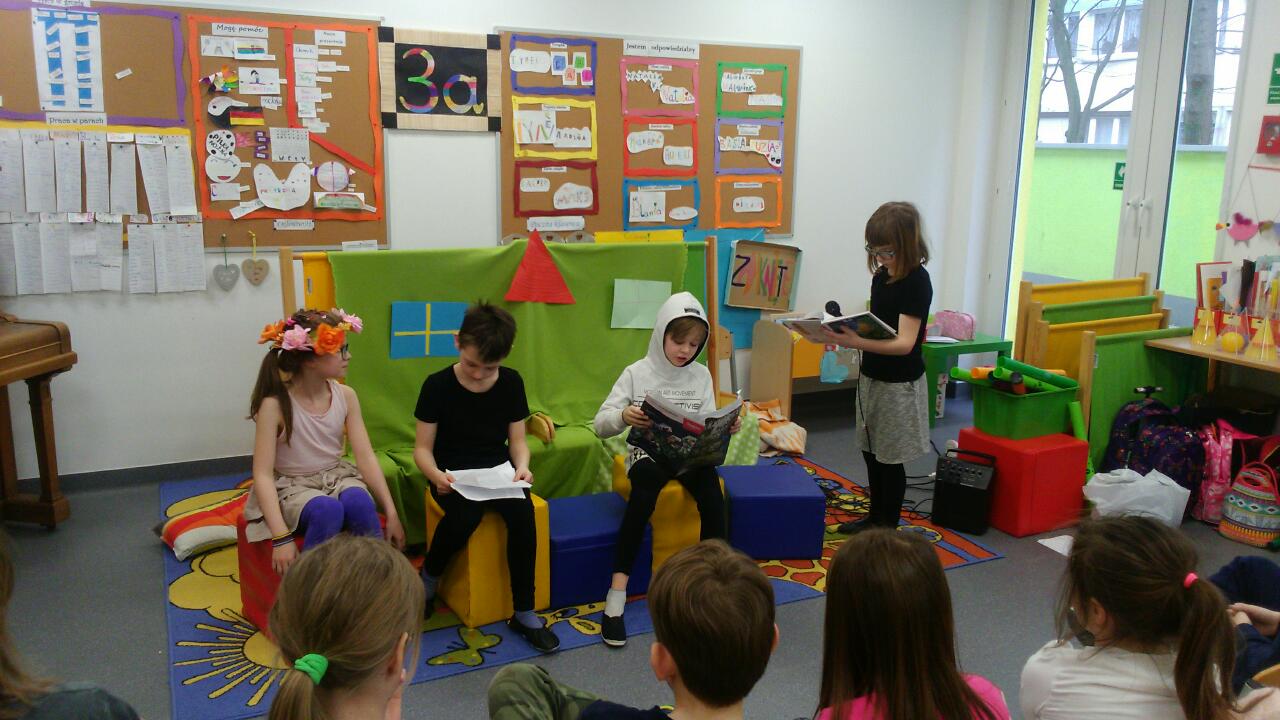 30 marca klasa 2a spotkała się na kolejnej już nocowance zakończonej porannym spotkaniem z wierszami. Każdy uczeń zaprezentował jeden wiersz napisany przez autorów poezji dla dzieci. Spotkanie odbyło się w obecności rodziców i Pani Dyrektor Jolanty Węglowskiej. Wszystko przebiegło się zgodnie z planem i zakończyło się sukcesem. Dzieci pokonały tremę towarzyszącą publicznym występom, a niektórzy przezwyciężyli lęk po raz pierwszy nocując poza domem i bez rodziców. Wszystkie doświadczenia okazały się bardzo cenne zarówno dla dzieci, jak i rodziców.