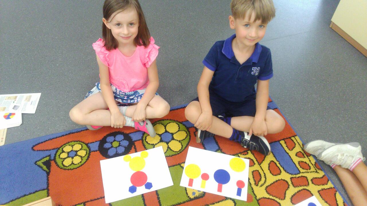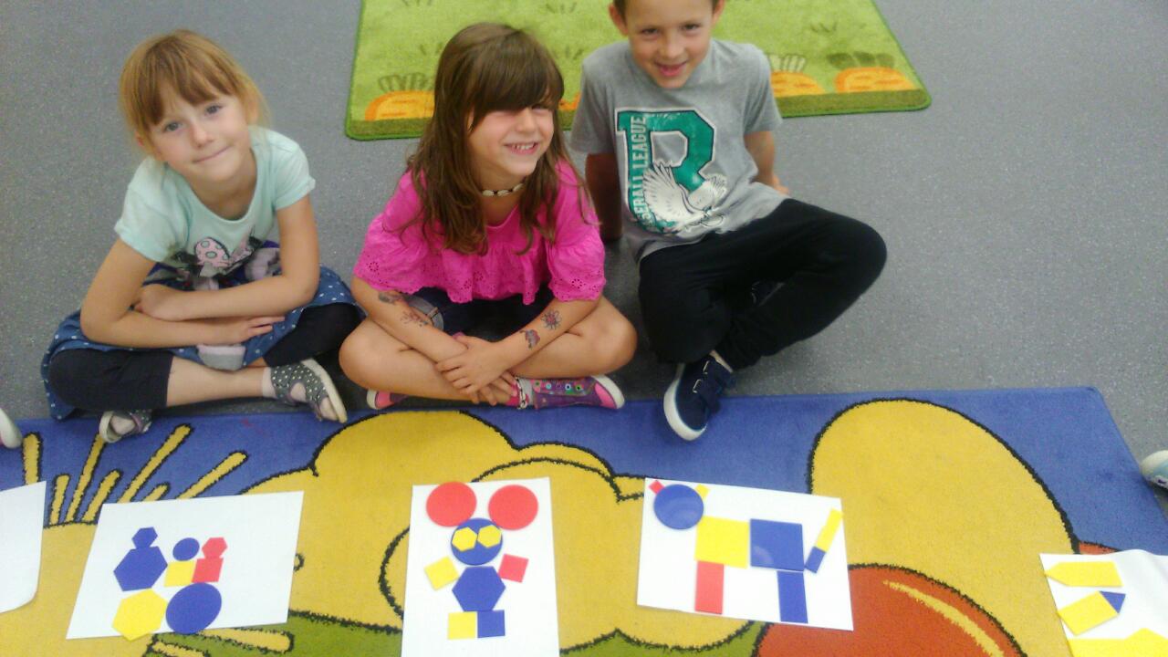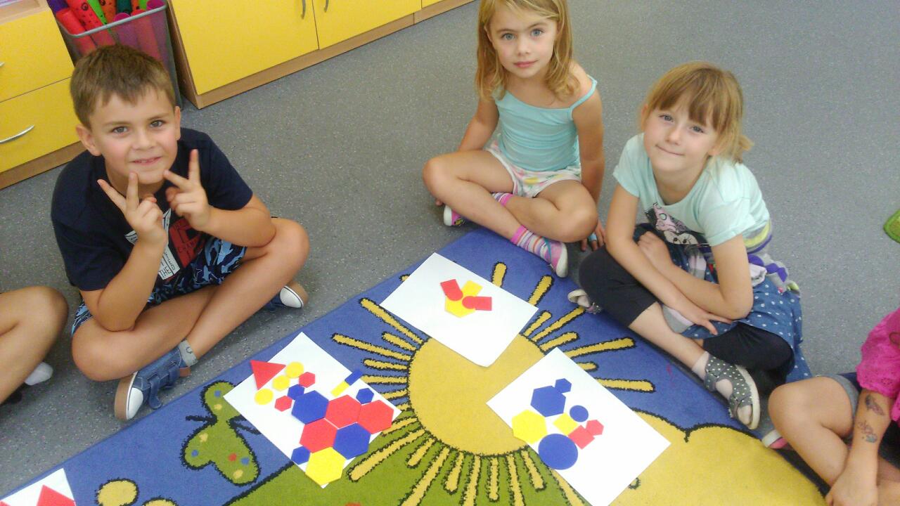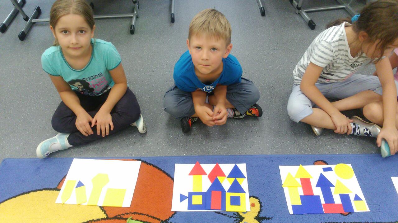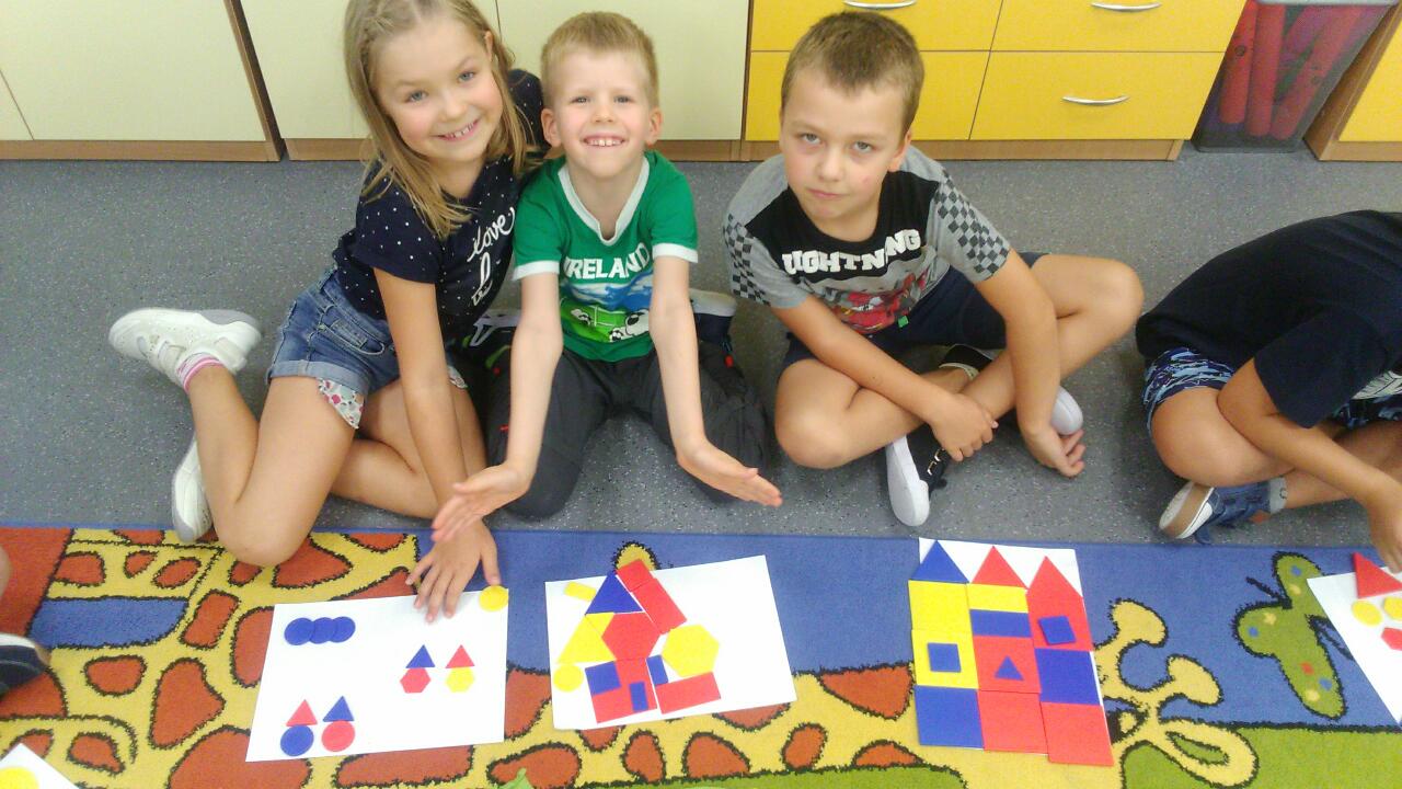 Dzieci z klasy 1a dobrze czują się w nowej roli uczniów. Poznały klasę, koleżanki i kolegów. Poznały szkołę i jej najbliższe otoczenie - efekt na pracach plastycznych. Świetnie pracują i bawią się ze sobą. Przy okazji zajęć z figurami geometrycznymi wykonały prace indywidualne i grupowe. Na zdjęciach efekty ich pracy.