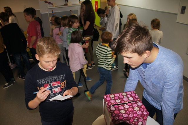 W piątek, 28 października na 3 i 4 lekcji bawiliśmy się podczas szkolnego Halloween. Przeprowadzony został m.in. konkurs na najlepszą dynię (w SP wygrała dynia zrobiona przez Oliwkę Jeżewską z kl. 4a, a w Gimnazjum dynia wykonana przez Zosię Kurek z kl. 1) oraz konkurs na najlepszy strój halloweenowy, w którym zwyciężyli: