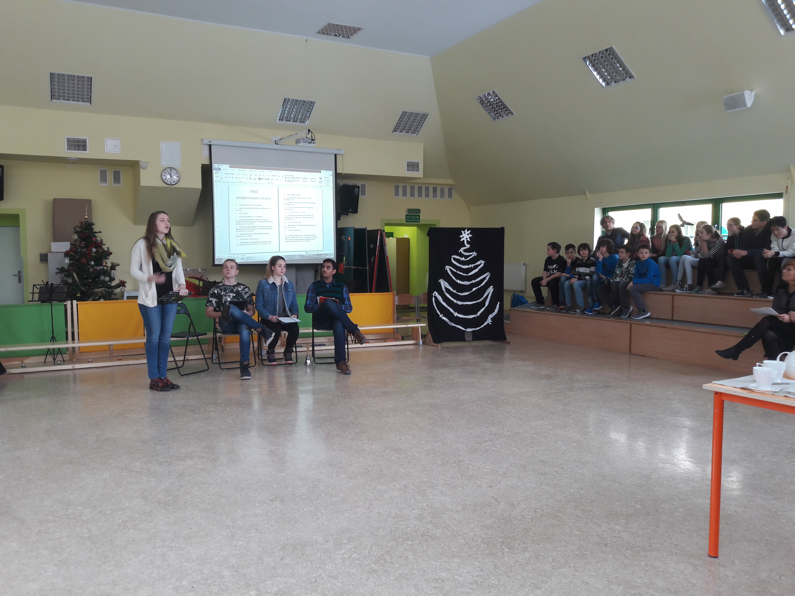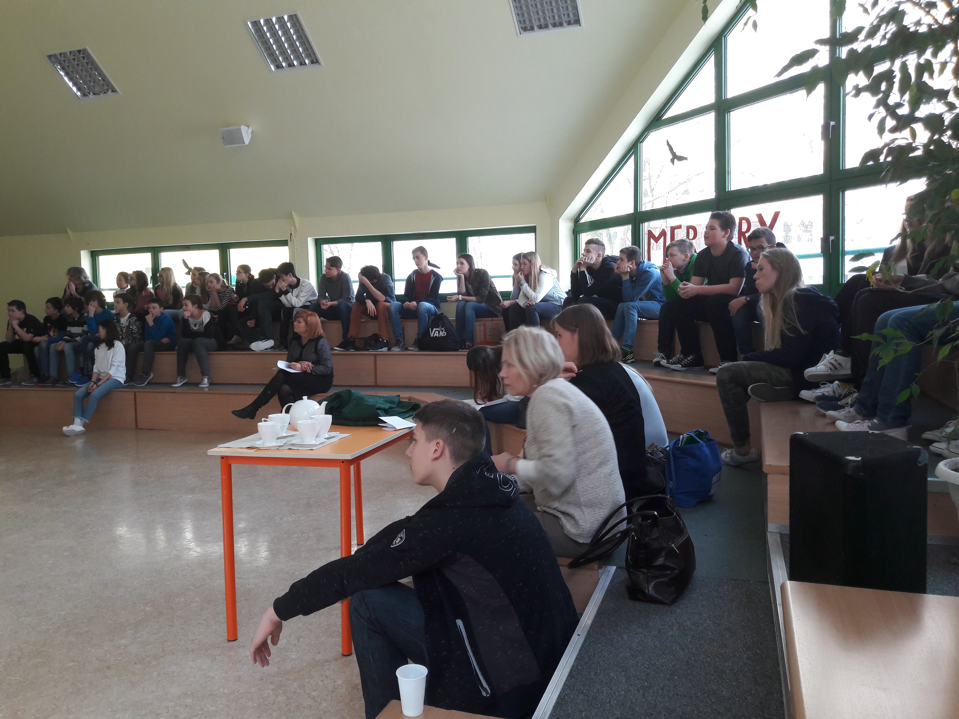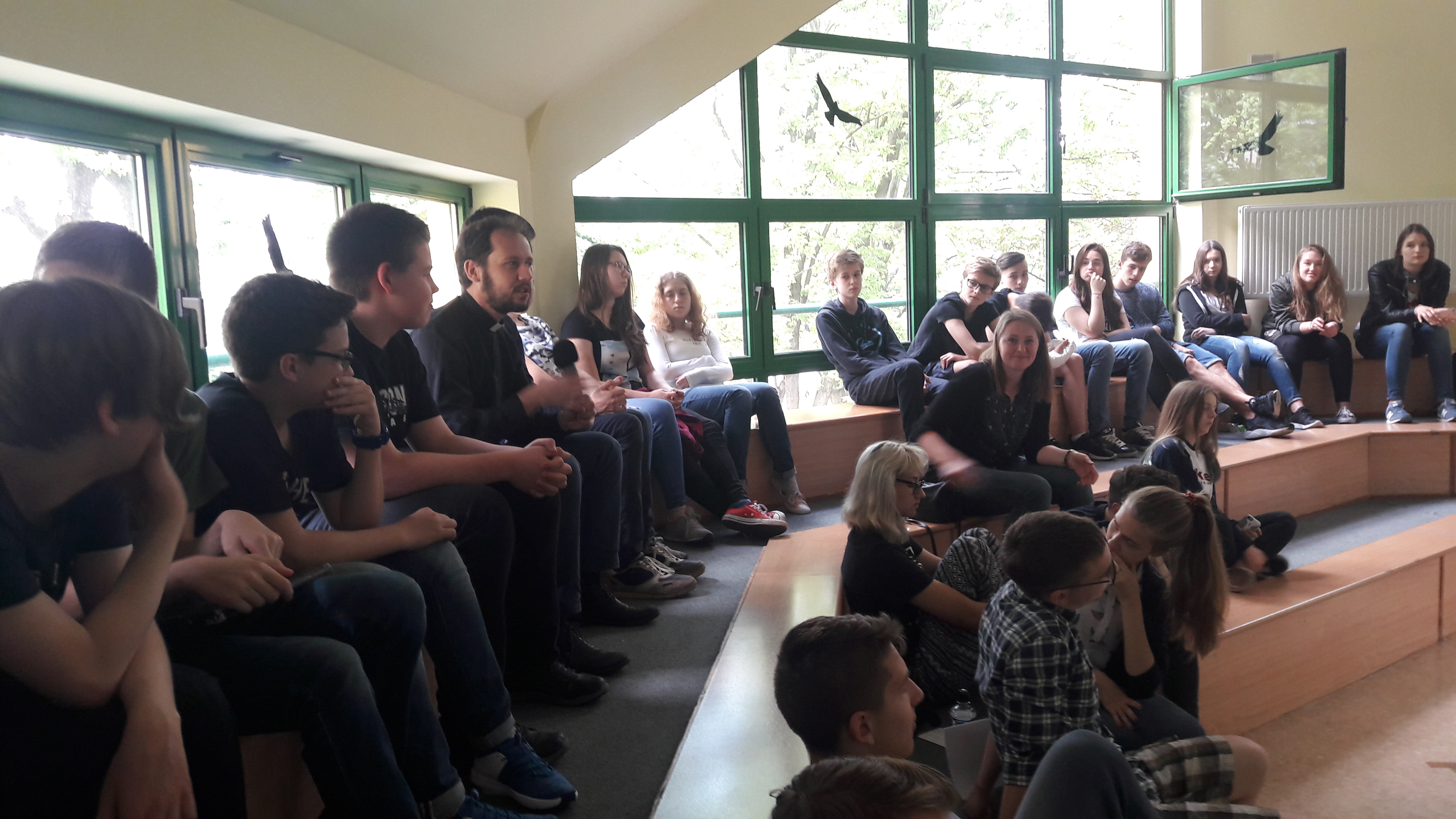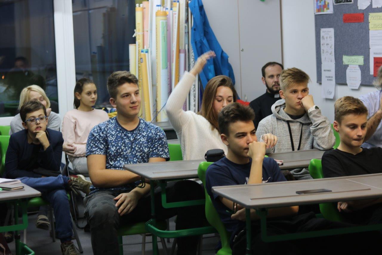 I debacie przysłuchiwali się i aktywny w niej udział wzięli m. in.: p. dyrektor Jolanta Węglowska, p. Bronisława Porębska-Solnica, p. Andrzej Polański, ks. Leszek Wilczak, Ania Ciechowska, Zuzia Daniłowicz, Tyberiusz Iwanicki, Bartek Kozłowski, Michał Skalski i Vadym Shevchenko (uczniowie kl. 3 Gimnazjum), Zosia Grzywacz i Dominik Andrusiewicz (kl. 7 SP), Mikołaj Niżyński (kl. 6 SP), Witek Warmuzek (preIB) oraz Jasiek … z Gimnazjum nr 23.