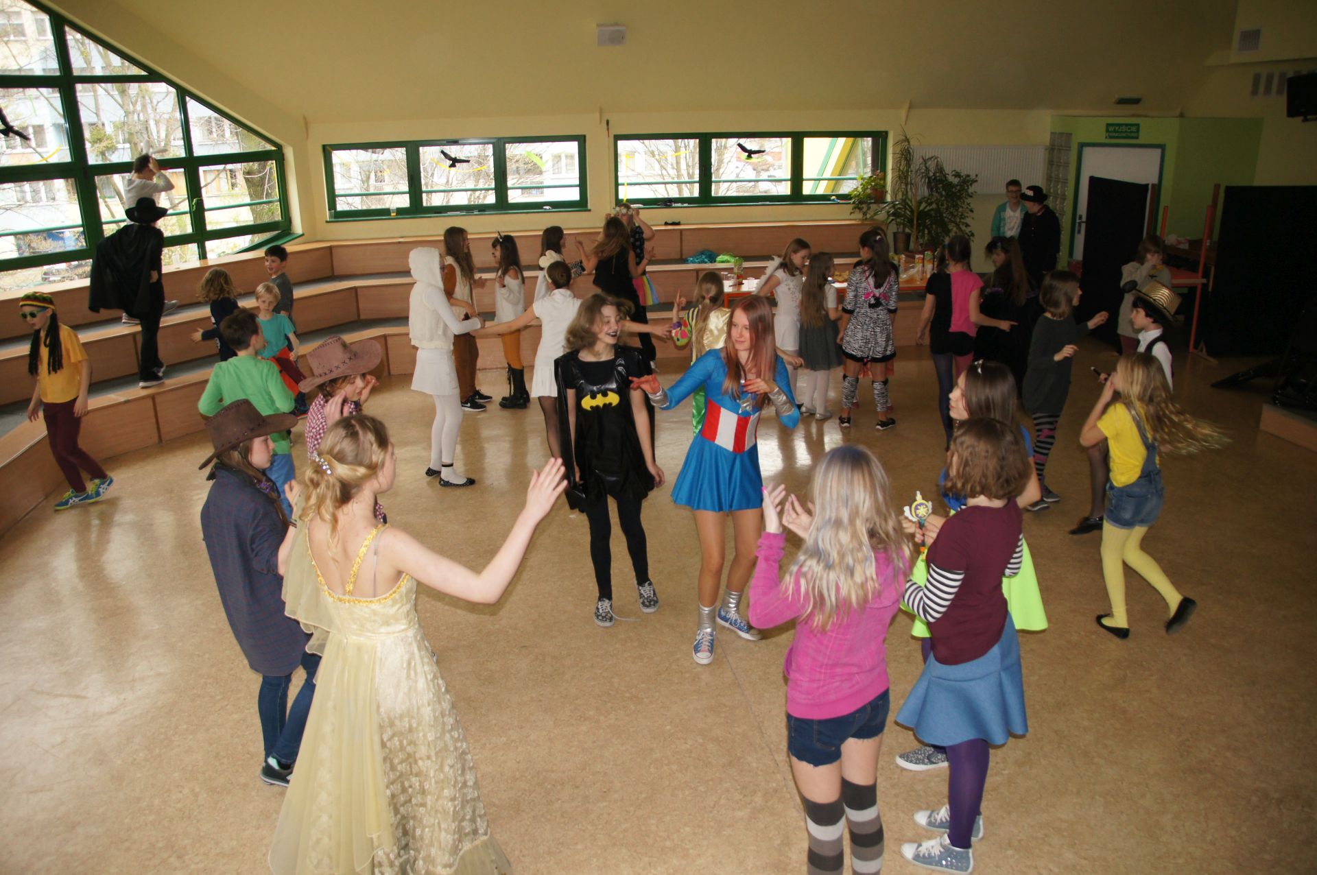 31 marca, po przeróżnych trudnościach, udało się nareszcie zorganizować imprezę / dyskotekę dla uczniów szkoły podstawowej. Większość uczniów i uczennic miała na sobie świetne, bardzo kreatywne stroje, co tylko polepszyło zabawę. Nasza DJka, Dominika Kozłowska (kl. 3aG) zadbała o każdy muzyczny, a także taneczny szczegół. Wspólnie świetnie się bawiliśmy, tańczyliśmy i śpiewaliśmy, uśmiechy nie schodziły wszystkim z twarzy, a na koniec, wszyscy najwytrwalsi podziękowali organizatorom (Prezydium Sejmiku Uczniowskiego), DJowi i nauczycielom, którzy z nami zostali wielkimi brawami! A po korytarzach EKOLI chodzą plotki, że niektórzy uczniowie, zainspirowani naszą imprezą, już szykują następną...! Zdjęcia autorstwa Andrzeja Michałka (kl. 3bG) w galerii - zapraszamy!